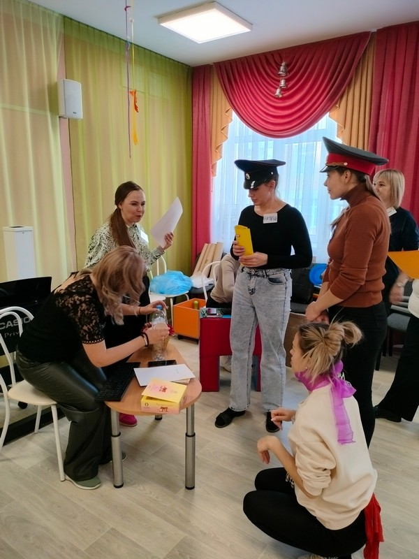 Педагоги приняли участие в тренинге по планированию игры (выбор темы игры, составление паутинки) и разыграли сюжетно-ролевую игру «Дневной сон в детском саду».