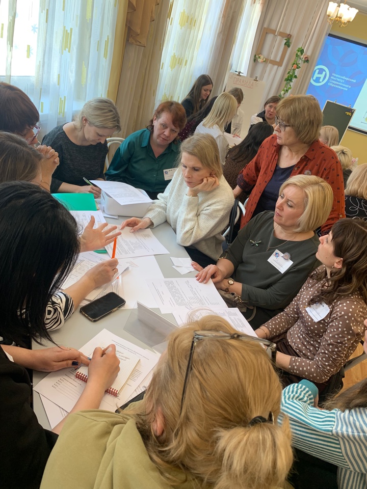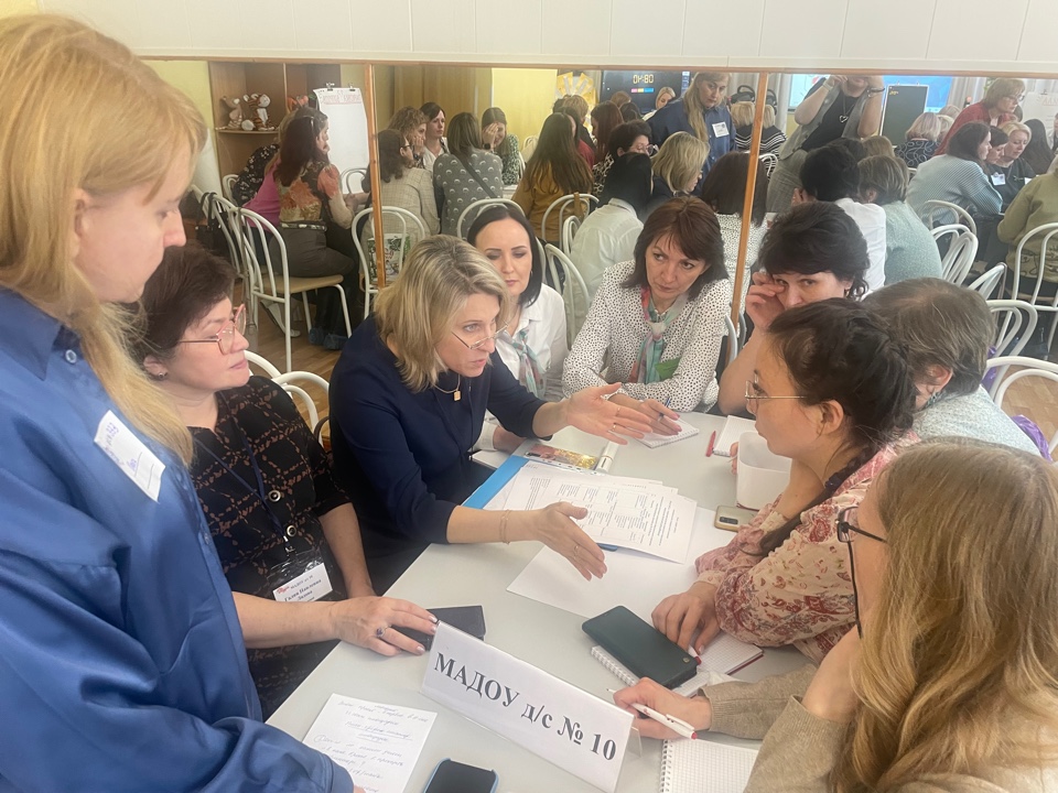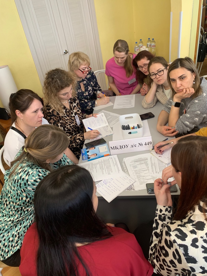 Мероприятие началось со знакомства: после обсуждения групповых правил и объединяющей игры участники семинара представили портрет каждой ДОО в формате «Печа-куча».