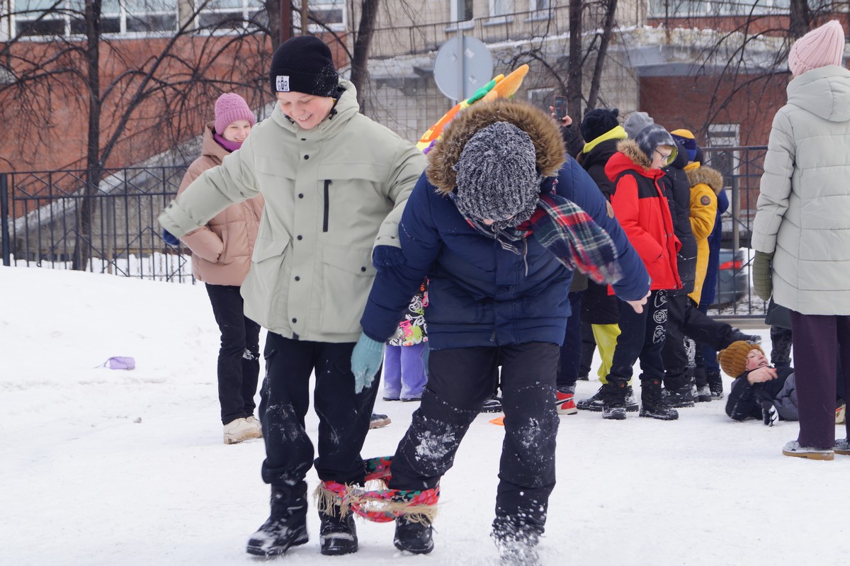 Классы-участники, получив маршрутный лист и карту-схему, выполняли на каждой станции игровое, забавное задание. В ходе мероприятия ребята соревновались в перетягивании каната, в дальности метания валенка, гонках на метелках. Показали свою меткость в игре «Колечки», «Снайперы». На станции «Радужный парашют» действовали сплоченно на командное взаимодействие.