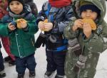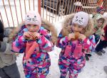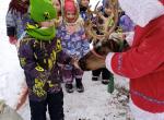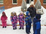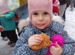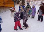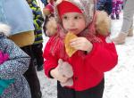 По традиции праздник начинается в зале, куда всех приглашает Красавица-Весна (в исполнении Кротовой Т.К.), там проходят веселые игры, загадки, пляски. Потом веселье плавно выплескивается на улицу. А там их встречает Медведь (воспитатель Романчина Л.С.), которого дети своим смехом и криками разбудили после зимней спячки. Начинаются игры, заклички, пляски… И вдруг из-за угла здания появляются разукрашенные сани. И в полной тишине прозвучал крик самого маленького воспитанника группы «Дюймовочка» Дениса: «Ого, какие собаки!» Его слова утонули в детских криках: «Смотрите, олени!» Началось катание на оленях. А сколько радости было у малышей, когда им разрешили покормить олешек мхом! Дети с восторгом смотрели, как осторожно, одними губами берет олень лакомство с детской ладошки. Затем дети разошлись по своим участкам и начались народные игры: бег в мешках, катание на карусели, бой подушками и валенками, катание со снежных гор, хороводы и еще много-много другого. И, конечно, самое любимое на Масленицу – блины! После того, как исполнили танец на «блинную» тематику, и младшие воспитатели в русских платках вынесли блины, дети не могли оторвать взгляд от заветных подносов. Надо было видеть, как аккуратно, не торопясь, подносили они блин ко рту. А воспитанники группы «Сказка» Настя и Саша, которые только утром всем твердили, что блины совсем не любят и есть не будут, здесь за секунду затолкали их в рот, воспитатель даже сфотографировать их не успела! Рассмешил всех крик Артема: «Ну научите уже мою маму делать такие блины!»