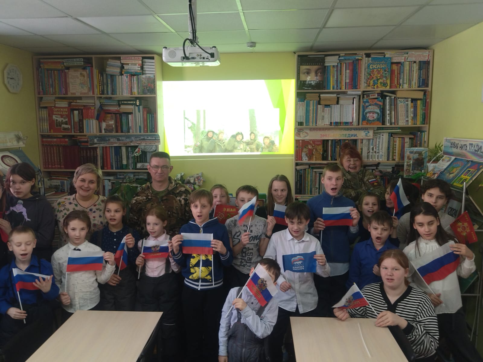 Представила артиллериста «Скифа» Ирина Анатольевна Незнамова, заведующая библиотекой. Она рассказала о боевом прошлом нашей страны, о патриотизме, привела примеры мужества участников Куликовской битвы, Бородинского сражения, Первой мировой, Великой Отечественной войн, локальных конфликтов. Напомнила присутствующим о «Крымской весне», что десятую годовщину воссоединения Крыма с Россией отметят 18 марта 2024 года.