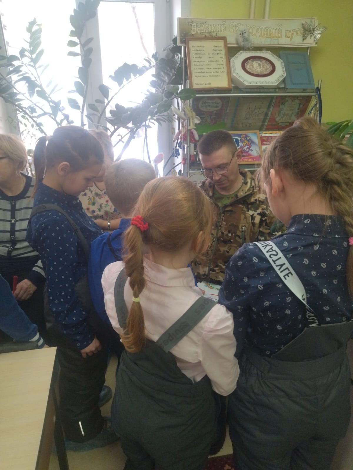 В начале марта в детской библиотеке имени братьев Гримм состоялась патриотическая встреча с жителем Калининского района, участником СВО. С воспитанниками социально-реабилитационного центра для несовершеннолетних «Снегири» встретился артиллерист Дмитрий Владимирович Головня, позывной «Скиф».