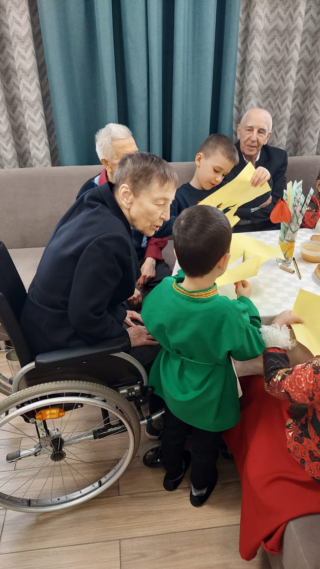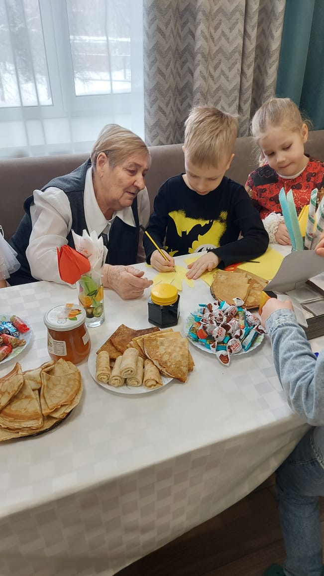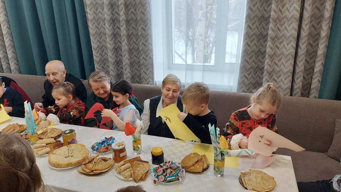 Педагоги и воспитанники показали небольшой концерт для жителей центра. Дети вместе с ветеранами сделали совместную поделку «Масленица». Родители воспитанников и сотрудники детского сада заранее подготовили блины, пироги и варенье. После концерта состоялось чаепитие, где уже с ответным словом выступили жители центра.