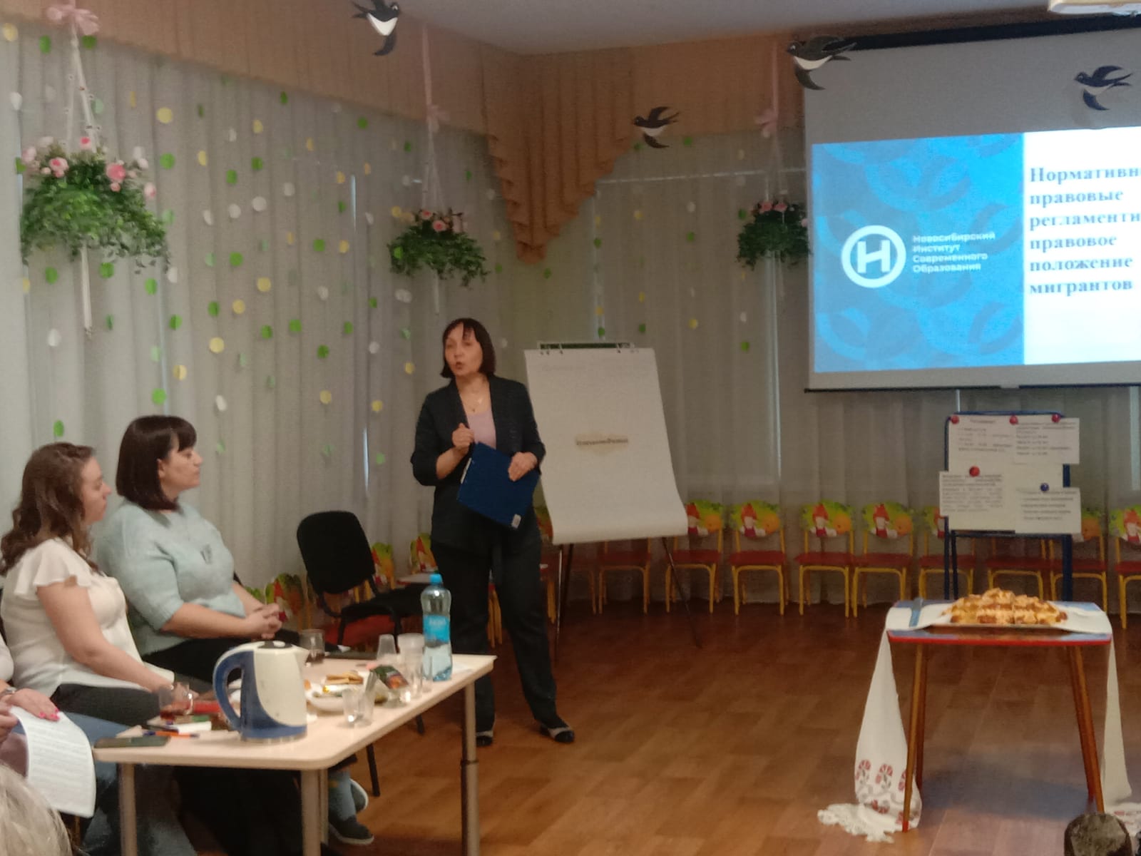В рамках семинара-практикума педагогами были рассмотрены следующие вопросы: понятия, термины направления деятельности стажировочной площадки «ОдинаковоРазные», нормативно-правовые аспекты организации образовательной деятельности детей мигрантов, роль взрослого (родителя, педагога) в воспитании и развитии детей разных национальностей, его компетенции в социальной, языковой, психологической адаптации детей иностранных граждан.