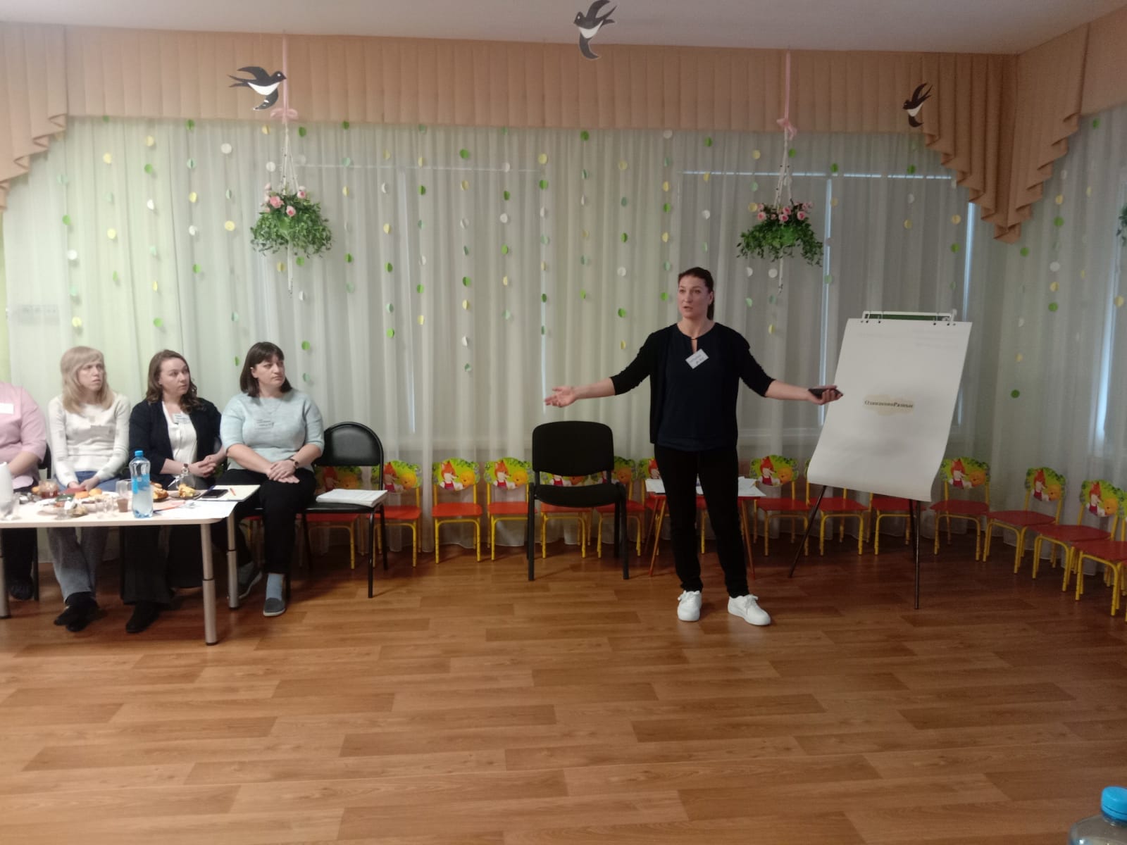 25 марта на площадке детского сада № 439 в рамках муниципального проекта «НовоСибСад – территория развития дошкольного образования» состоялся интерактивный семинар-практикум с элементами тренинга по направлению деятельности «НовоСибСадОдинаковоРазные». В мероприятии приняли участие 20 педагогов из детских садов №№ 163, 280, 439, 457. Модераторами мероприятия выступили: Галкина Людмила Николаевна, старший воспитатель МАДОУ д/с № 439, и Гусельникова Юлия Анатольевна, старший методист МАУ ДПО «НИСО», куратор стажировочной площадки.