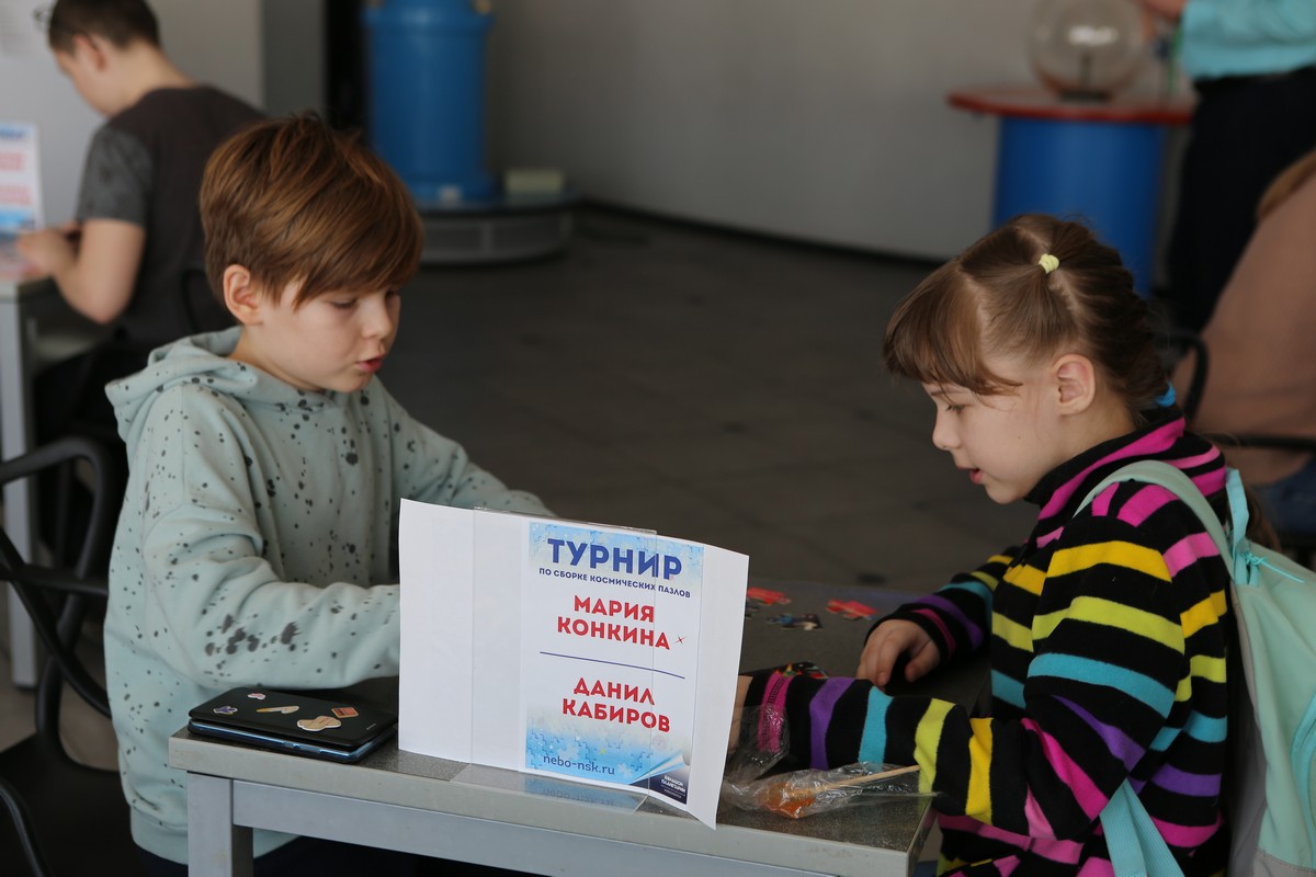 В Большом новосибирском планетарии имени космонавта Анны Кикиной Городской турнир по скоростной сборке космических пазлов ознаменовал старт Улетных весенних каникул. За первенство боролись десть команд. Абсолютным победителем стала Костенко Екатерина, ученица 9-го класса МБОУ СОШ № 49, которая завершила три тура по скоростной сборке общим итогом в 17,5 минут. Этот результат позволил ей по итогам мероприятия провести мастер-класс для остальных участников, показав возможности и приемы для максимально скоростной сборки этой головоломки.