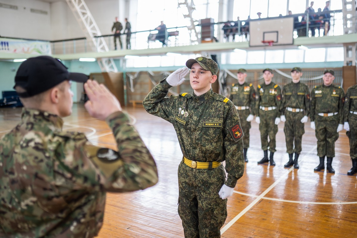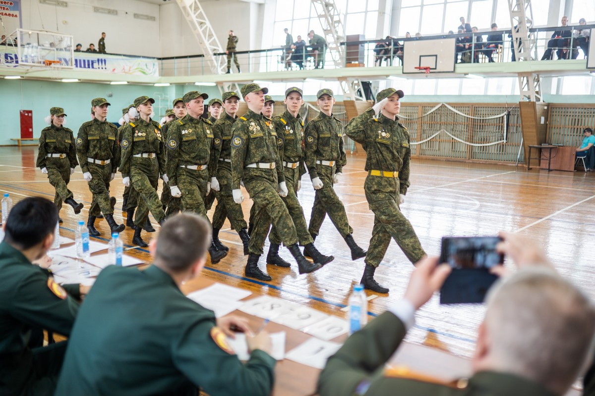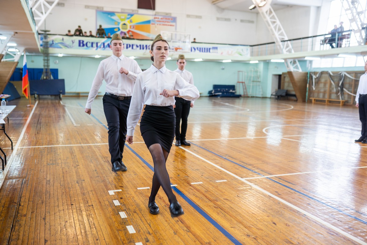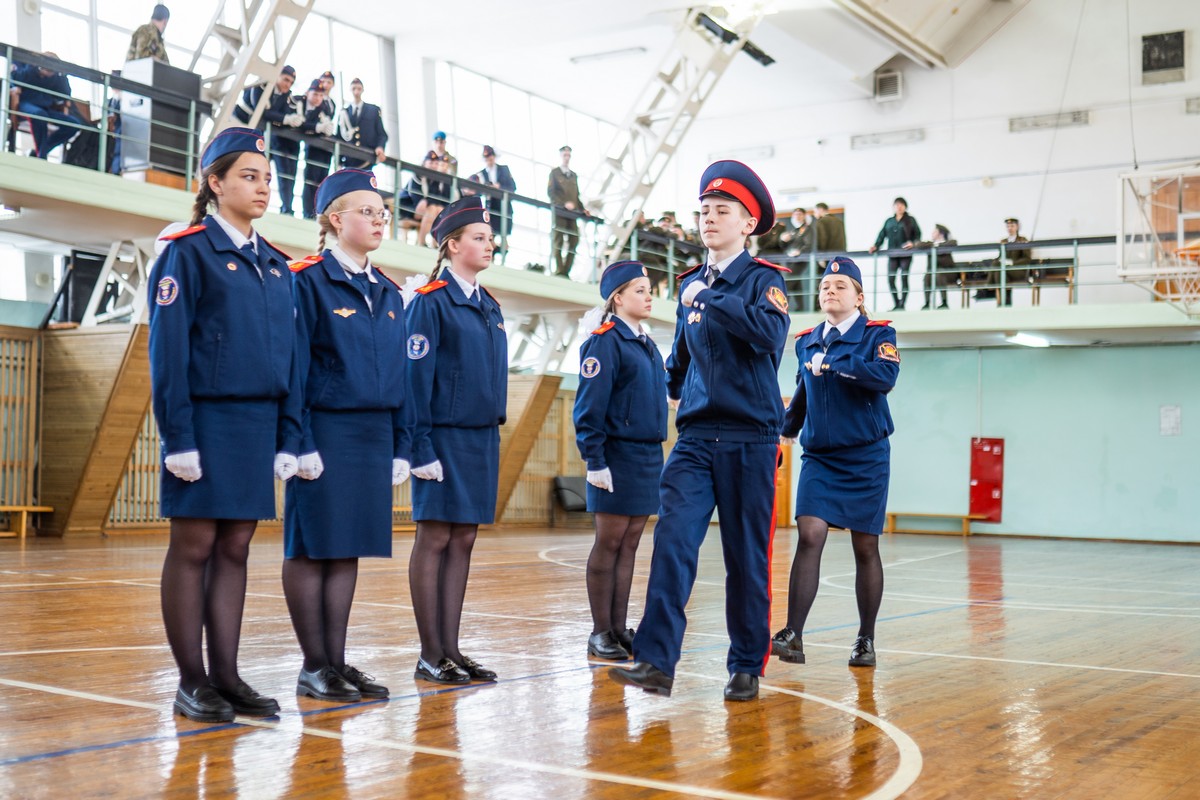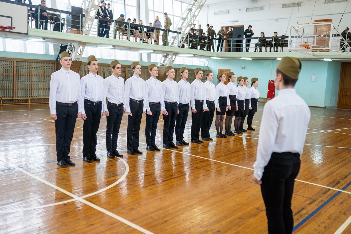 В городском финале смотра приняли участие 8 взводов муниципальных общеобразовательных учреждений города Новосибирска – победителей районных смотров. Всего – 128 человек.