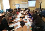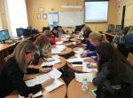 На заседании присутствовали руководители школьных МО и учителя математики. Лариса Николаевна акцентировала внимание коллег на стратегических документах с точки зрения повышения качества обучения предмету.