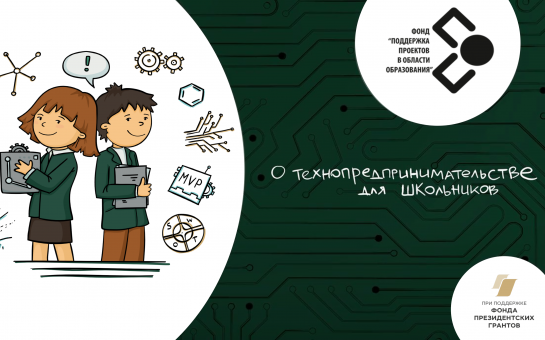 Проект «О технопредпринимательстве для школьников» реализован Фондом «Образование» с использованием гранта Президента Российской Федерации на развитие гражданского общества, предоставленного Фондом президентских грантов.