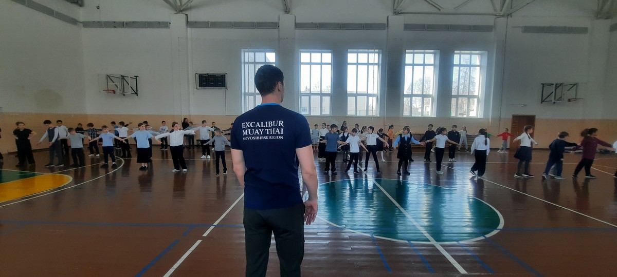 Занятие для школьников провёл Михаил Борисович Сартаков, мастер спорта России международного класса по тайскому боксу. За всю историю развития этого вида спорта в Новосибирской области наш земляк стал первым обладателем данного титула.