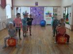 Задание «Прыгающие планеты» было выполнено на фитболах. Дети весело двигались на скорость к цели. Конкурс «Кто быстрее» предполагал передвижение по скамейке лежа на животе.