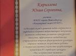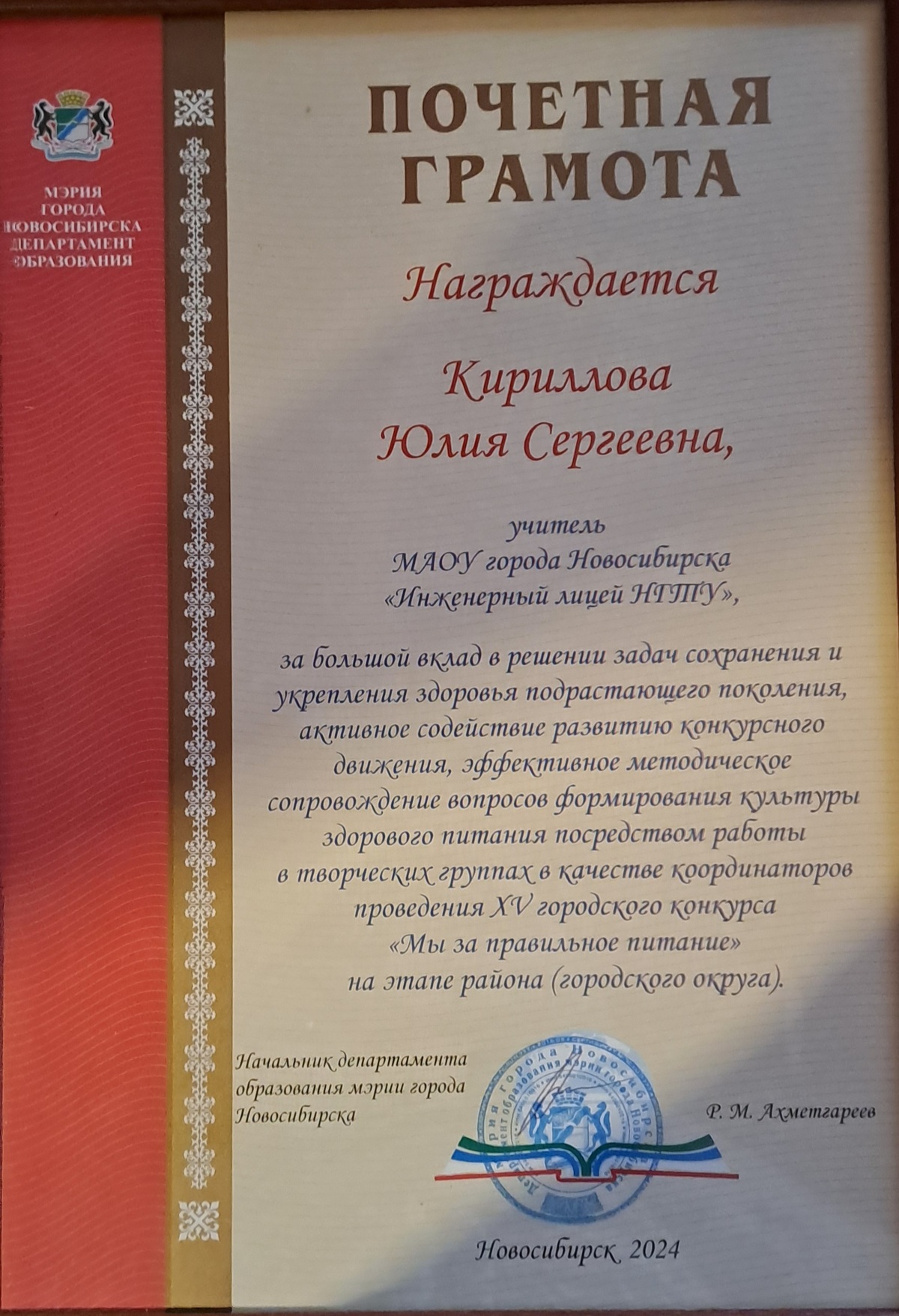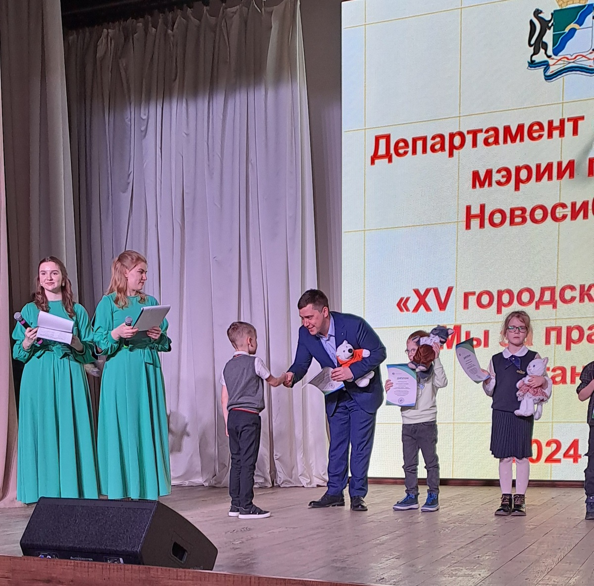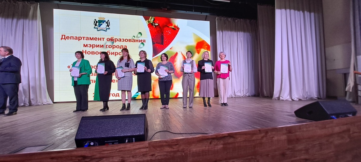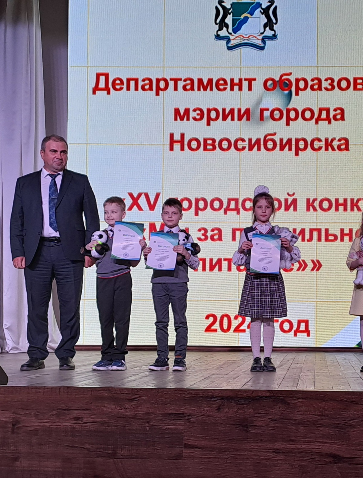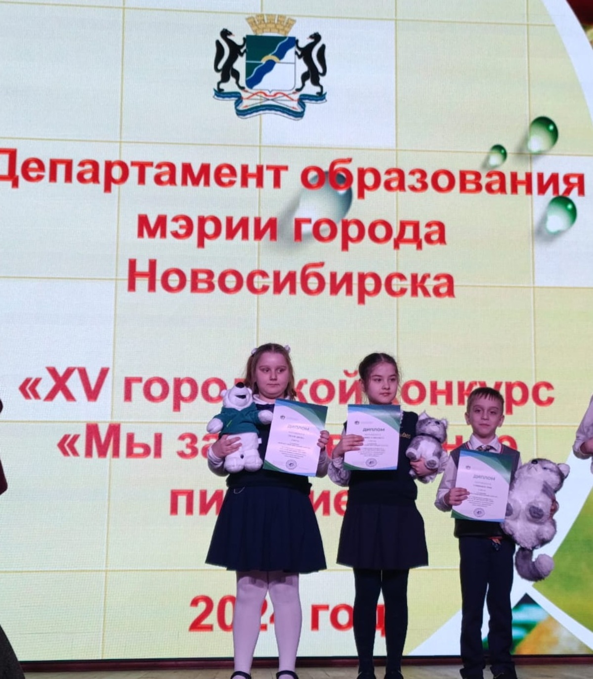 Благодарственными письмами департамента образования мэрии города Новосибирска отмечены педагоги-руководители Т. А. Булгакова, О. Н. Грачёва, О. С. Таран. Почетной грамотой награждена учитель начальных классов Ю. С. Кириллова.