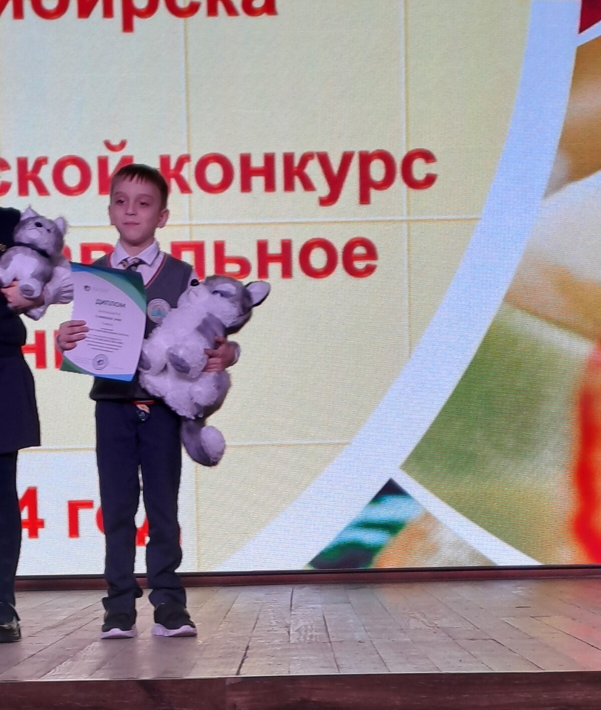 1 место – Тафинцев Эрик, 1 «В» класс, номинация «Мой вкусный школьный завтрак». Классный руководитель Ю. С. Кириллова;