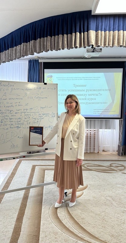 Олеся Владимировна Середа, заведующий МАДОУ д/с № 81, рассказала о характерных особенностях преуспевающего руководителя, а также представила коллегам главные правила делового этикета и правила планирования времени. Участники семинара рассмотрели карту компетенций руководителя и познакомились с практиками и лучшими инструментами, которые помогут справиться с выгоранием и остаться в ресурсе в любой ситуации как руководителю, так и всей команде.