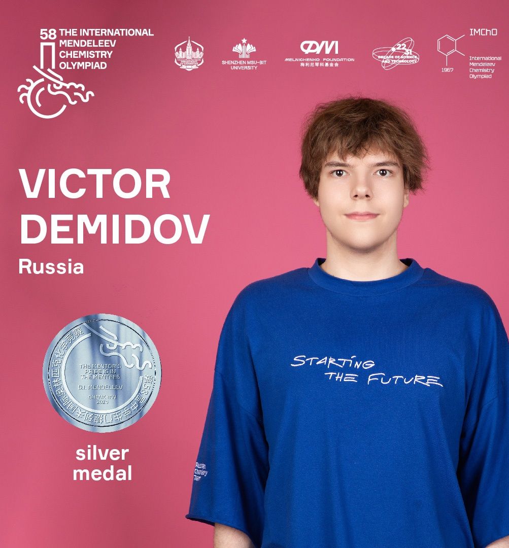 Учащийся 10-1 класса СУНЦ НГУ Виктор Демидов стал серебряным призером Международной Менделеевской олимпиады по химии.