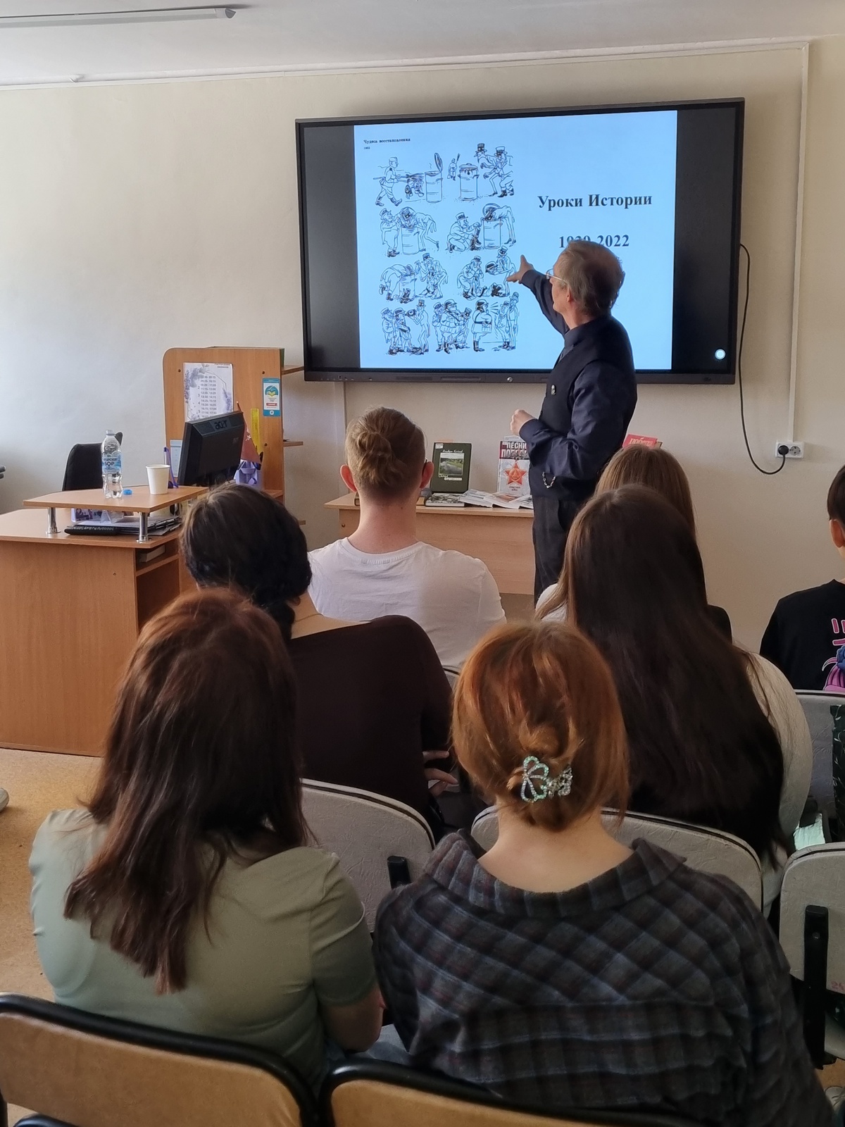 В рамках увлекательного диалога в библиотеке НОККиИ состоялась беседа «Уроки истории» с кандидатом филологических наук, главным библиотекарем отдела художественной литературы НГОНБ Евгением Викторовичем Сосниным. Темы, затронутые в ходе беседы, были настолько актуальны и важны, что каждый из присутствующих стремился высказать свою точку зрения. Одной из ключевых стала роль молодежи в создании будущего нашей страны. Евгений Викторович подчеркнул, что молодые люди являются двигателями прогресса и развития общества. Именно на их плечах лежит ответственность за формирование общественного сознания, за будущий прогресс и достижения в области науки и культуры.