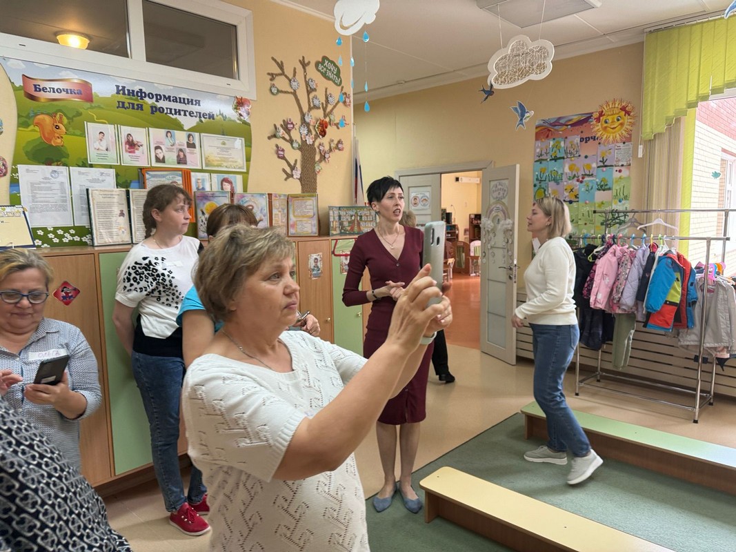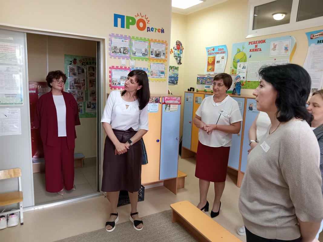 С педагогами была проведена экскурсия в приемные групп детского сада с презентацией «рабочих» стендов, рубрик, наглядной информации для родителей воспитанников и последующего анализа представленного информационного поля в рамках эффективного взаимодействия с семьями.