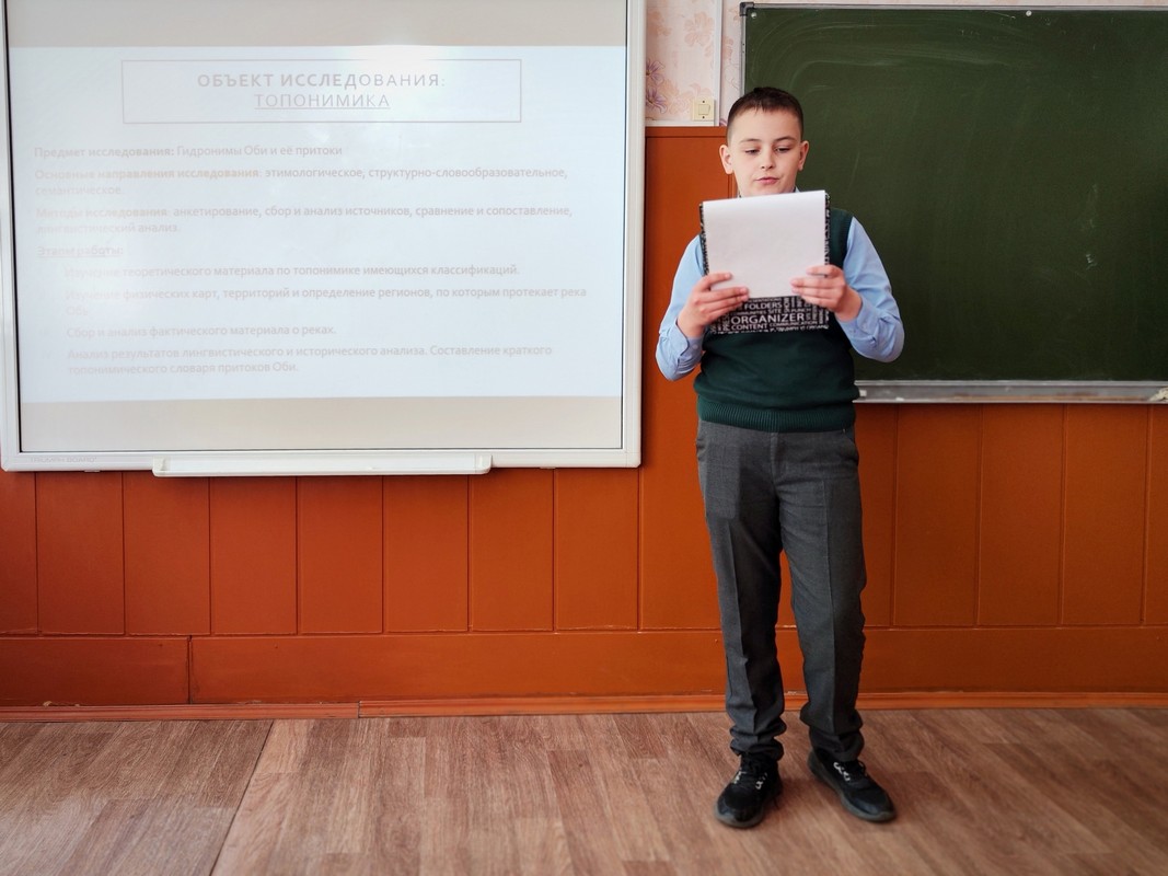 – I место – «Топонимика Оби» (П. Тымченко, 6 «А» класс), научный руководитель – А. В. Насибян.