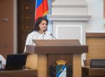 Людмила Михайловна Симонина, и. о. начальника отдела по взаимодействию с органами территориального общественного самоуправления управления общественных связей мэрии города Новосибирска, выступила с докладом об организации работы летних трудовых отрядов несовершеннолетних, организованных при территориальных общественных самоуправлениях.