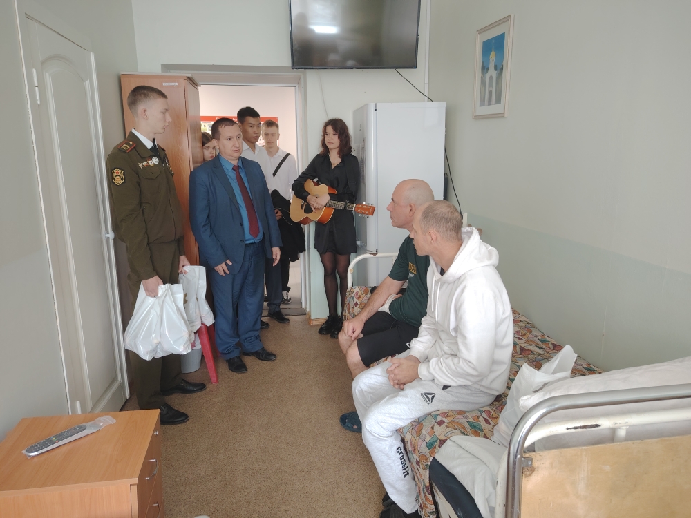 29 августа учащиеся правоохранительного 11 «А» класса, члены ВПК «Гвардеец» школы № 71 посетили бойцов СВО, находящихся на лечении в госпитале нашего города.