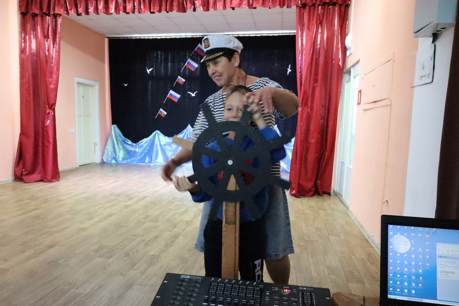 Боцман Брусенцева Лариса Александровна вела концертную программу, подготовленную актерами Образцового коллектива ансамбль танца «Семицветик» и театральной студии «Праздник», затем юные мореплаватели с интересом разгадывали морские загадки.