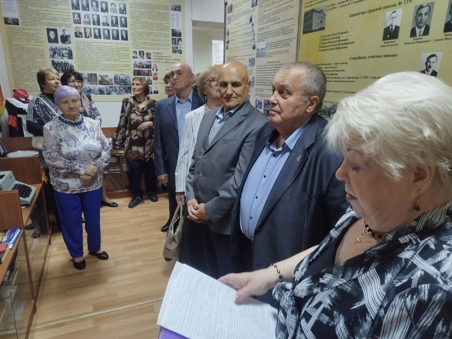 Заслуженный учитель, ветеран педагогического труда, 22 года руководивший районным образованием, Сергей Николаевич Смирнов поздравил учителей и вспомнил, что наш музей был в своё время первым и единственным районным музеем истории развития образования в Новосибирске. Людмила Васильевна Фролушкина, председатель Союза женщин НСО, говорила о славе нашего учительства в Новосибирске, о первенстве по многим показателям обучения, об умении и желании учителей делиться своими находками и открытиями. «День учителя был для нас лучшим праздником, который отмечали в Доме учёных», – вспоминала она, как всегда, закончив выступление стихами: «Есть праздники, что навсегда с тобой! К ним приникает намертво душа!»
