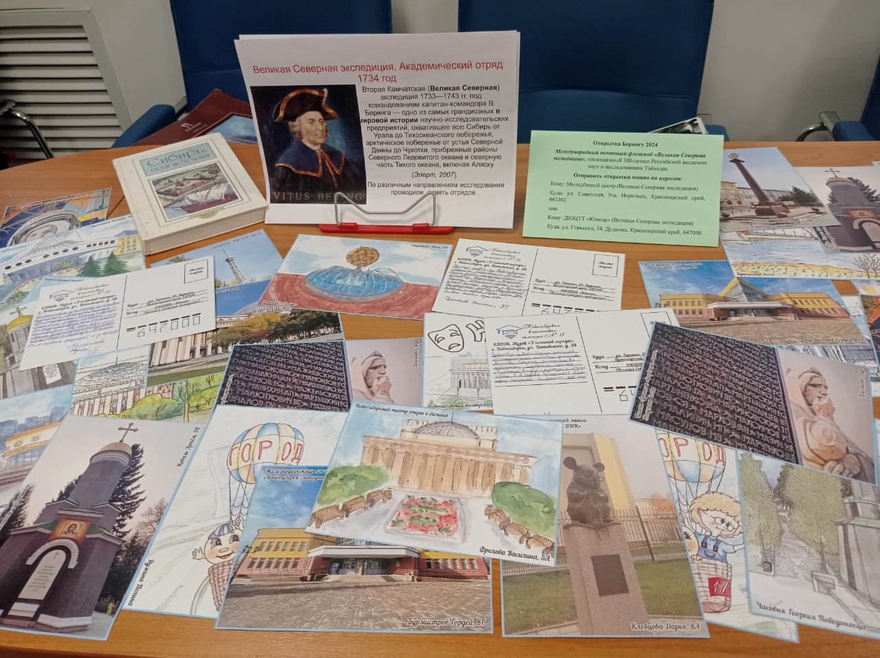 Открытки улетели сразу по нескольким адресам России. Прежде всего, в города Красноярского края: Норильск (Молодежный центр) и Дудинку (ДЮЦТТ «Юниор»), к потомкам русских путешественников: Марату Талгатовичу Берингу (г. Бийск), Михаилу Александровичу Чирикову (г. Нижний Новгород). Наша ТВ-группа подготовила видеосюжет о почтовом флешмобе для программы «Всё по-взрослому» на ОТР. Смотри по ссылке: https://vk.com/video-216916198_456239149