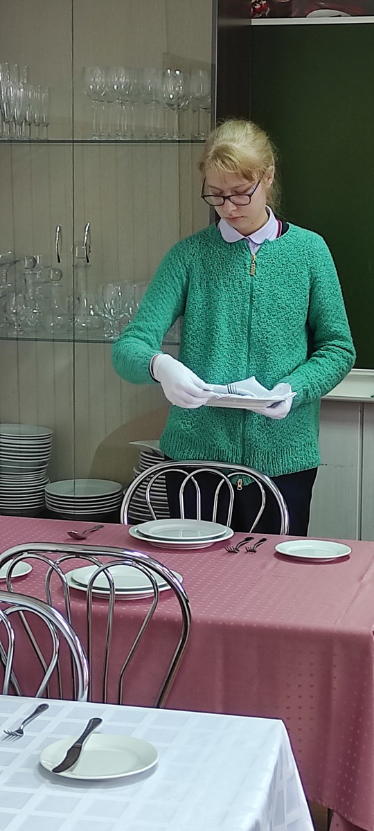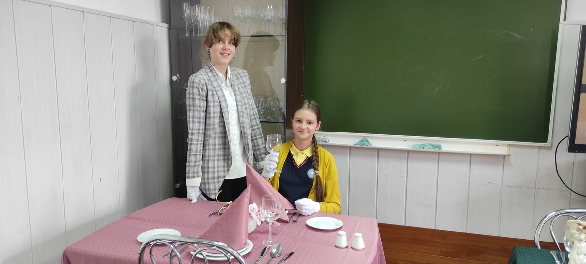 Во время встречи Юлия Вячеславовна вместе со студентами колледжа, которые взяли шефство над ребятами, научила сервировать стол к разным событиям, красиво складывать салфетки, украшать застолье. Надев белые перчатки, ребята сервировали столы к завтраку, обеду, ужину. Каждому это может пригодиться в жизни, а для кого-то, возможно, эта встреча станет первым шагом в будущую профессию.