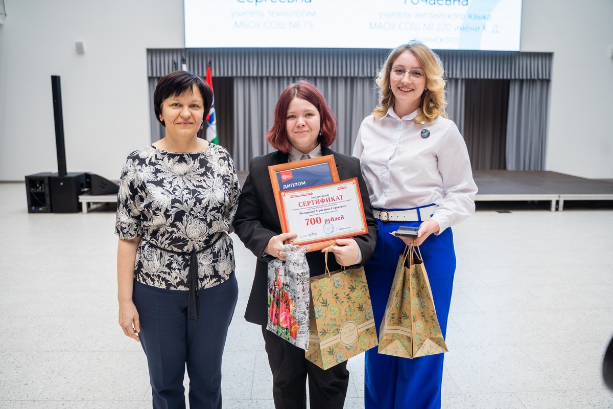 Дипломы победителям и лауреатам и сертификаты участникам конкурса вручила Попкова Ирина Владимировна, заместитель директора Новосибирского Института Современного Образования. Подарки предоставила компания «Школьный Учебник».