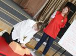 Особое внимание было уделено проведению сердечно-легочной реанимации, помощи при потере сознания, закупорке дыхательных путей инородным телом.