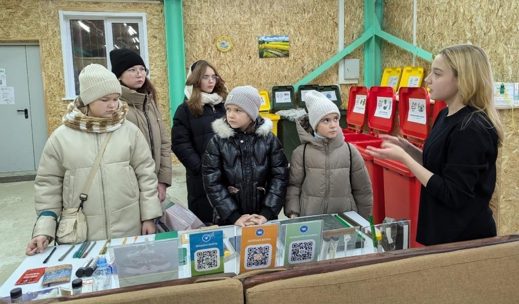 Экскурсия началась до открытия экоцентра. У входа в пункт приёма группу ребят встретила улыбчивая Екатерина – волонтёр экоцентра. Поприветствовав учащихся, она рассказала о видах отходов, которые принимаются у входа в пункт приёма. В самом помещении экскурсия продолжилась, вдоль стен стояли контейнеры с маркировкой по видам для вторсырья. Они были практически пустые, но в течение дня эти контейнеры заполнятся вторсырьём неравнодушными людьми, стремящимися к чистоте и поддерживающими бережное отношение к окружающей среде.