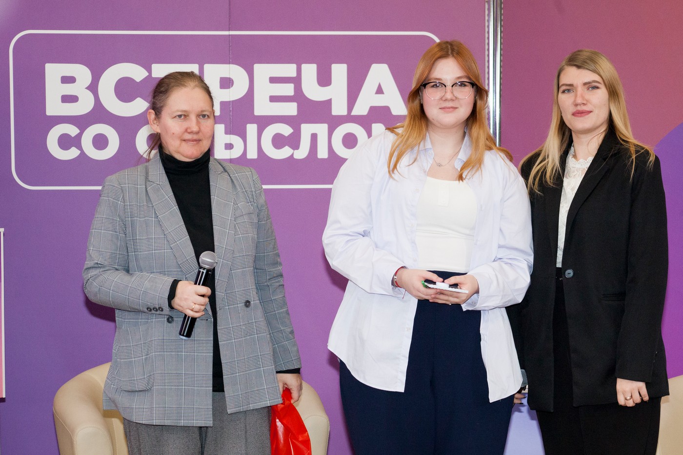 В завершение встречи школьники приняли участие в розыгрыше специальных призов проекта «Встреча со смыслом». Всем активным участникам диалога Елена Николаевна также вручила памятные подарки.