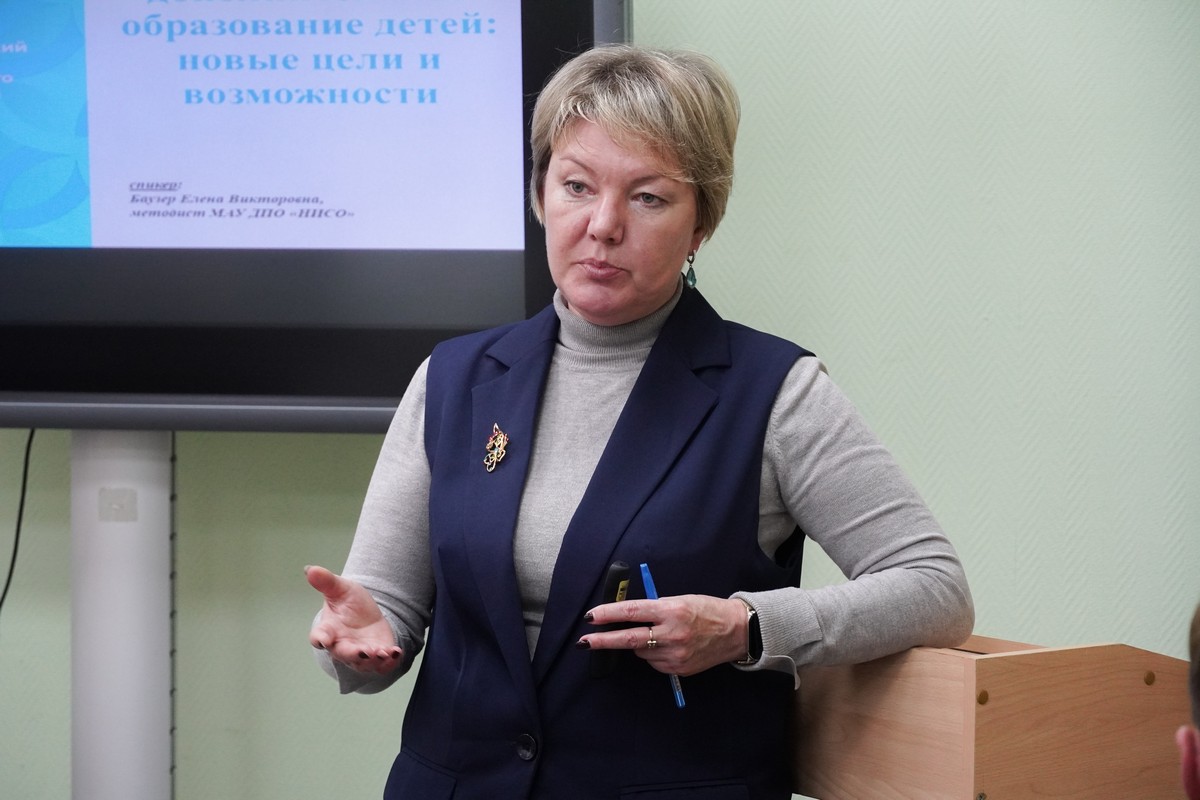 О современном образовании детей, новых целях и возможностях рассказала Елена Викторовна Баузер, методист ЦВиДО МАУ ДПО «НИСО».