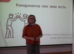 Второй учебный день был посвящен изучению конструктивных способов поведения в конфликте. После мини-лекции педагоги обсудили способы поведения в конфликте, правила, которых следует придерживаться при разрешении конфликта; анализировали проблемную ситуацию, вырабатывая пошаговый алгоритм действия в конфликте. В ходе коммуникативного практикума участники семинара осваивали приемы активного слушания и технику «Я-высказывания», учились вербализации собственных чувств по поводу проблемных ситуаций в профессиональной деятельности. Диалоговый разбор конкретной ситуации, связанный с конфликтом с родителями, привел к пониманию того, почему, как и что делать в подобных ситуациях.