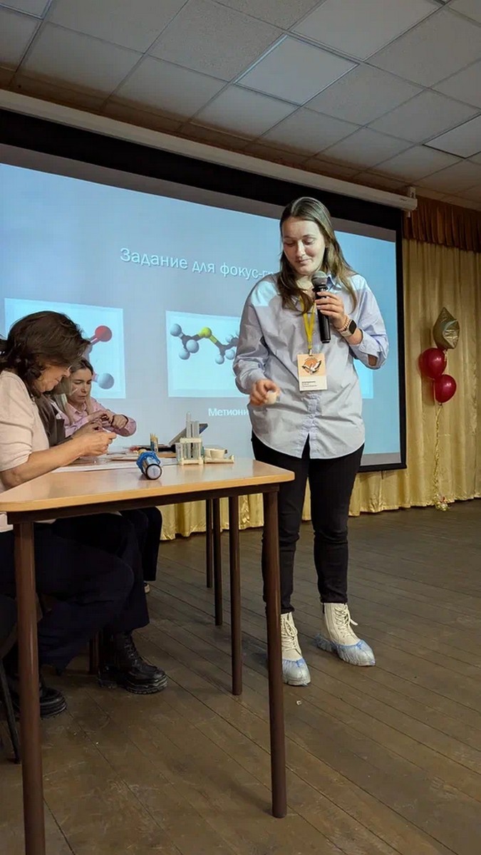 В актовом зале лицея была дружественная обстановка, помогающая конкурсантам показать свои педагогические находки, используемые технологии, в том числе в работе с фокус-группами из числа зрителей, которые были в составе групп поддержки.
