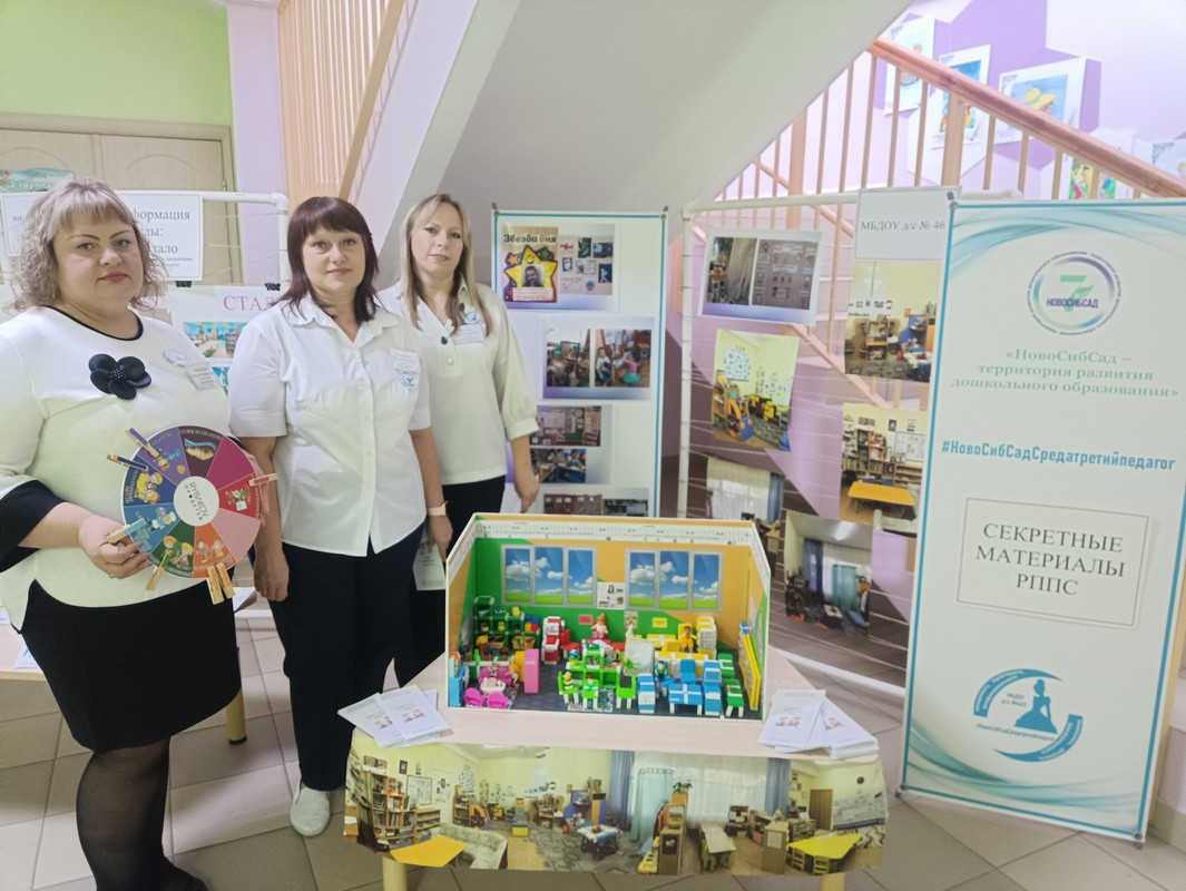 – Захарченко Е. П., старший воспитатель МБДОУ д/с № 481, и Свирновская Т. М., учитель-логопед, представили стенд: «Культурно-образовательный потенциал города Новосибирска как ресурс обогащения развивающей среды ДОУ»;