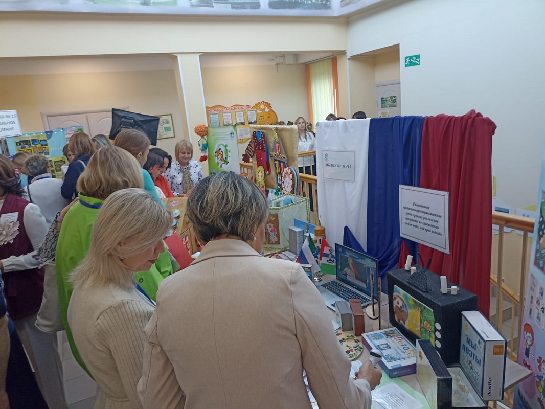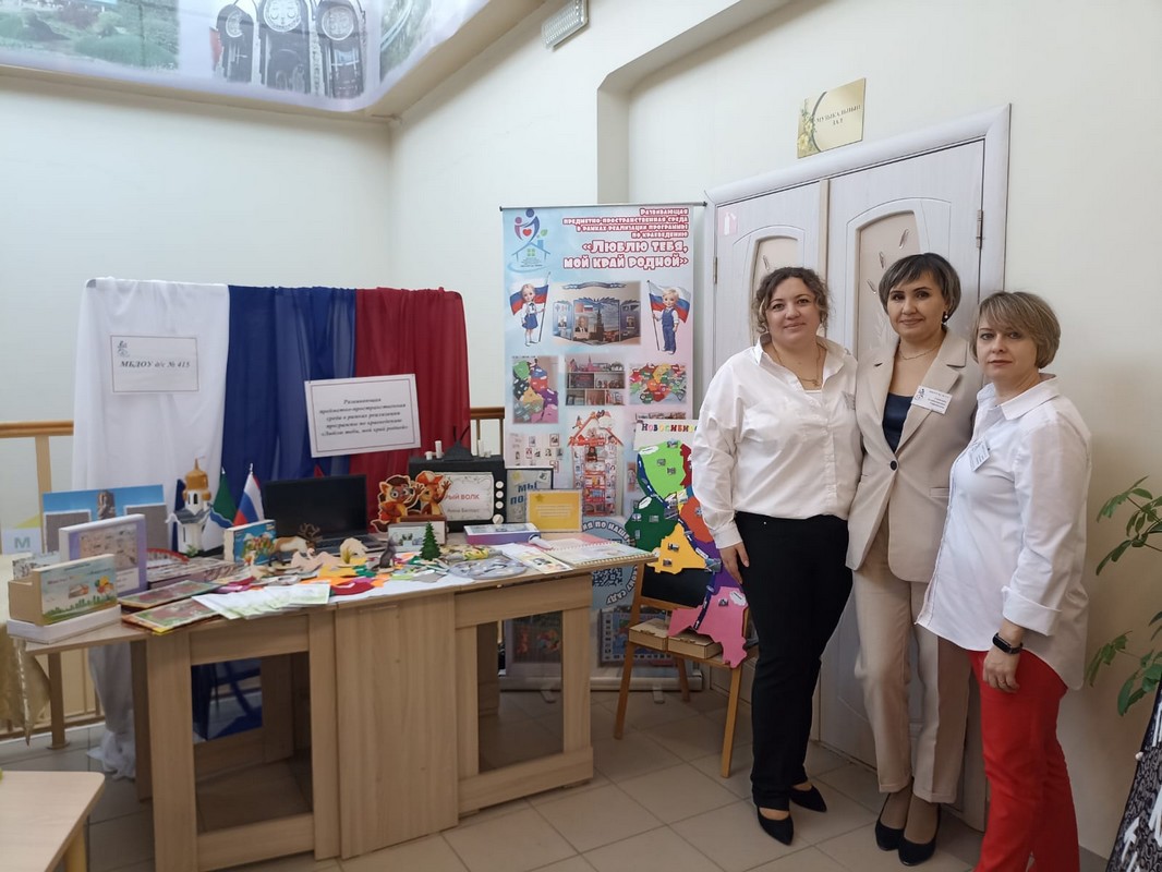– Сафошкина С. В., заведующий МБДОУ д/с № 415, Иванникова В. С., старший воспитатель, представили направление «Организация РППС в рамках реализации программы по краеведению «Люблю тебя, мой край родной»;