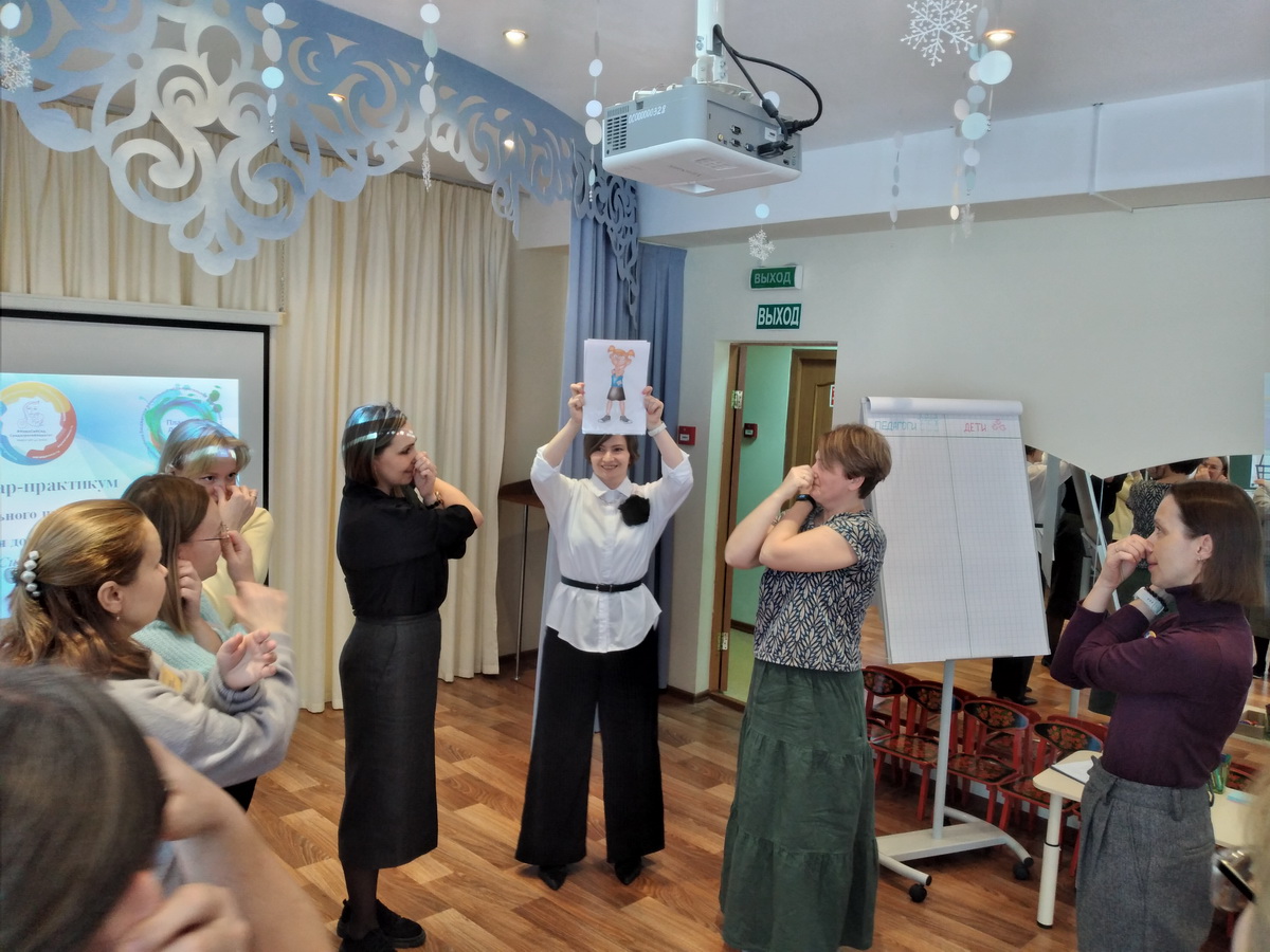 10 декабря детский сад № 504 провел семинар-практикум в рамках стажировочной площадки «Средатретийпедагог» муниципального проекта «НовоСибСад – территория развития дошкольного образования». В семинаре приняли участие педагоги детских садов №№ 504, 70, 390, 490, куратор направления – Татьяна Павловна Курбасова, старший методист МАУ ДПО «НИСО». Модераторы мероприятия: Светлана Михайловна Оберемок, эксперт МАУ ДПО «НИСО», Екатерина Владимировна Гнедина, Татьяна Александровна Шевченко, старшие воспитатели МБДОУ ЦРР д/с № 504.