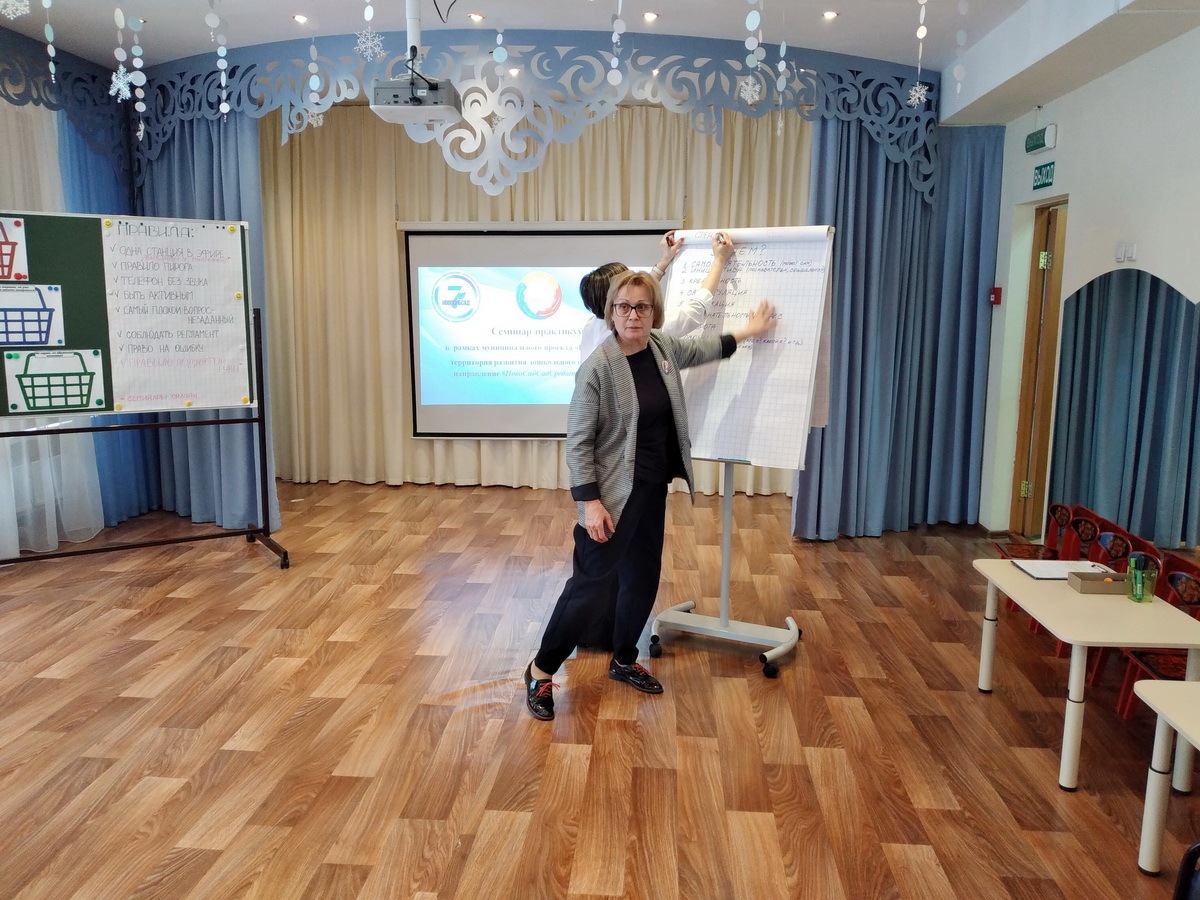 Концепция семинара была направлена на повышение компетенций педагогов стажировочной площадки «НовоСибСадСредатретийпедагог» в вопросах реализации современной практики «Голос ребенка» в развивающей предметно-пространственной среде ДОО. После традиционного приветствия, «Ледокола», обсуждения регламента, правил, условий работы с «парковкой вопросов», участники приступили к просмотру домашних заданий ДОО-стажеров: презентаций изменений в РППС группового пространства ДОО в процессе деятельности в процессе стажировки.