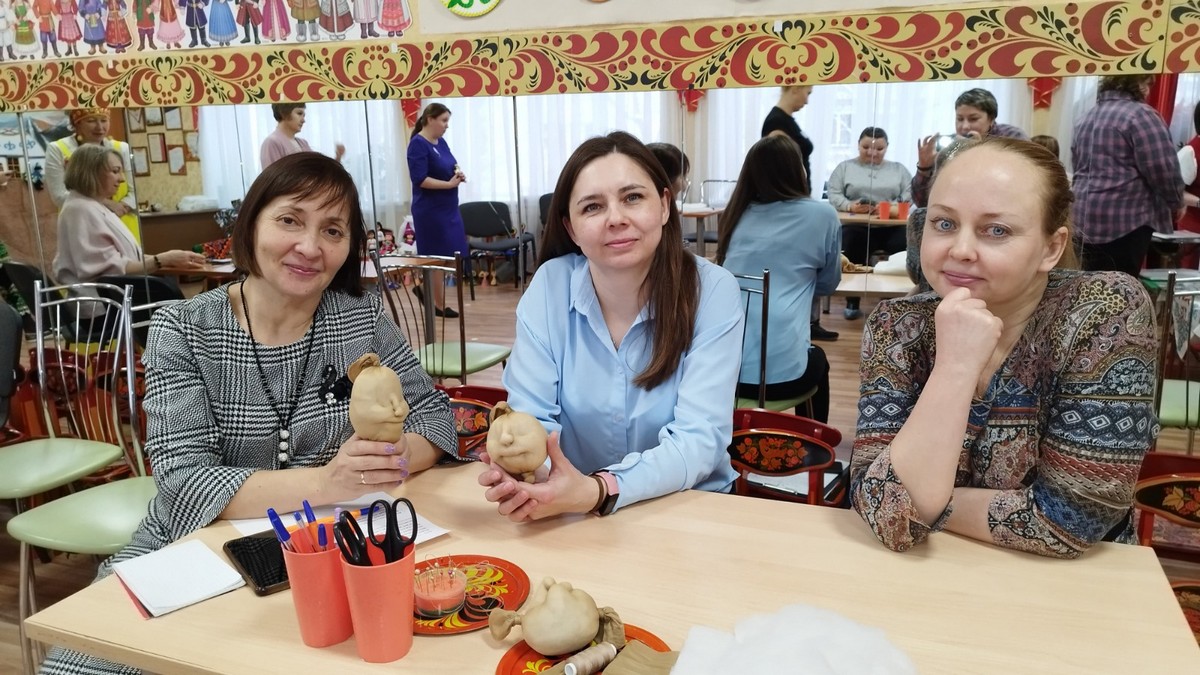 Участников мастер-класса поприветствовала Татьяна Михайловна Панова, заведующий детским садом № 163. Она познакомила педагогов с одним из направлений деятельности дошкольной организации – формирование интереса к созданию кукол и к истории национального костюма у всех участников образовательных отношений (педагогов, детей и родителей).