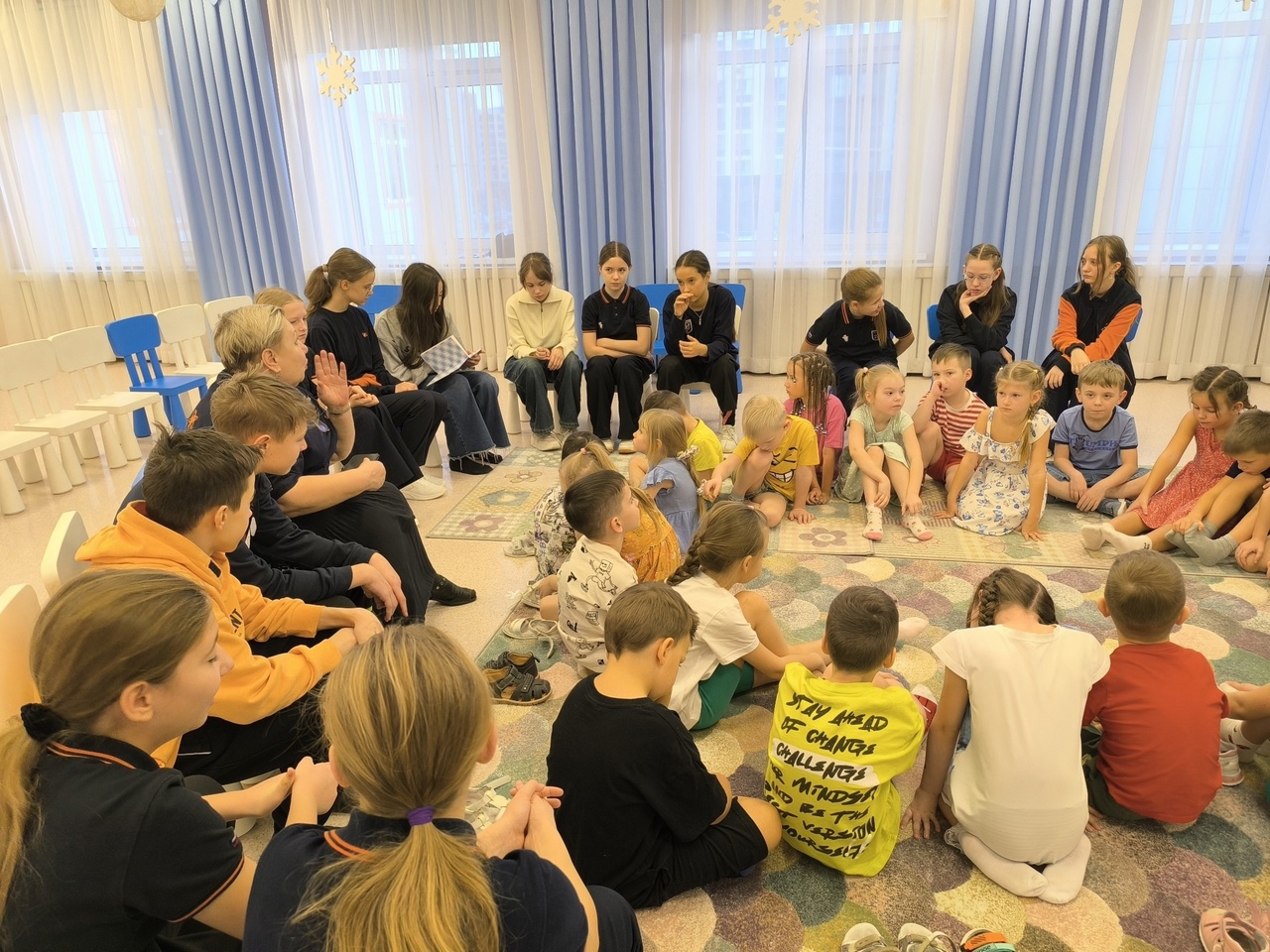 Радость от общения, детские улыбки и смех, искреннее сопереживание героям рассказа, похожие истории из своей жизни, рассказанные детьми, наполняют каждую встречу.