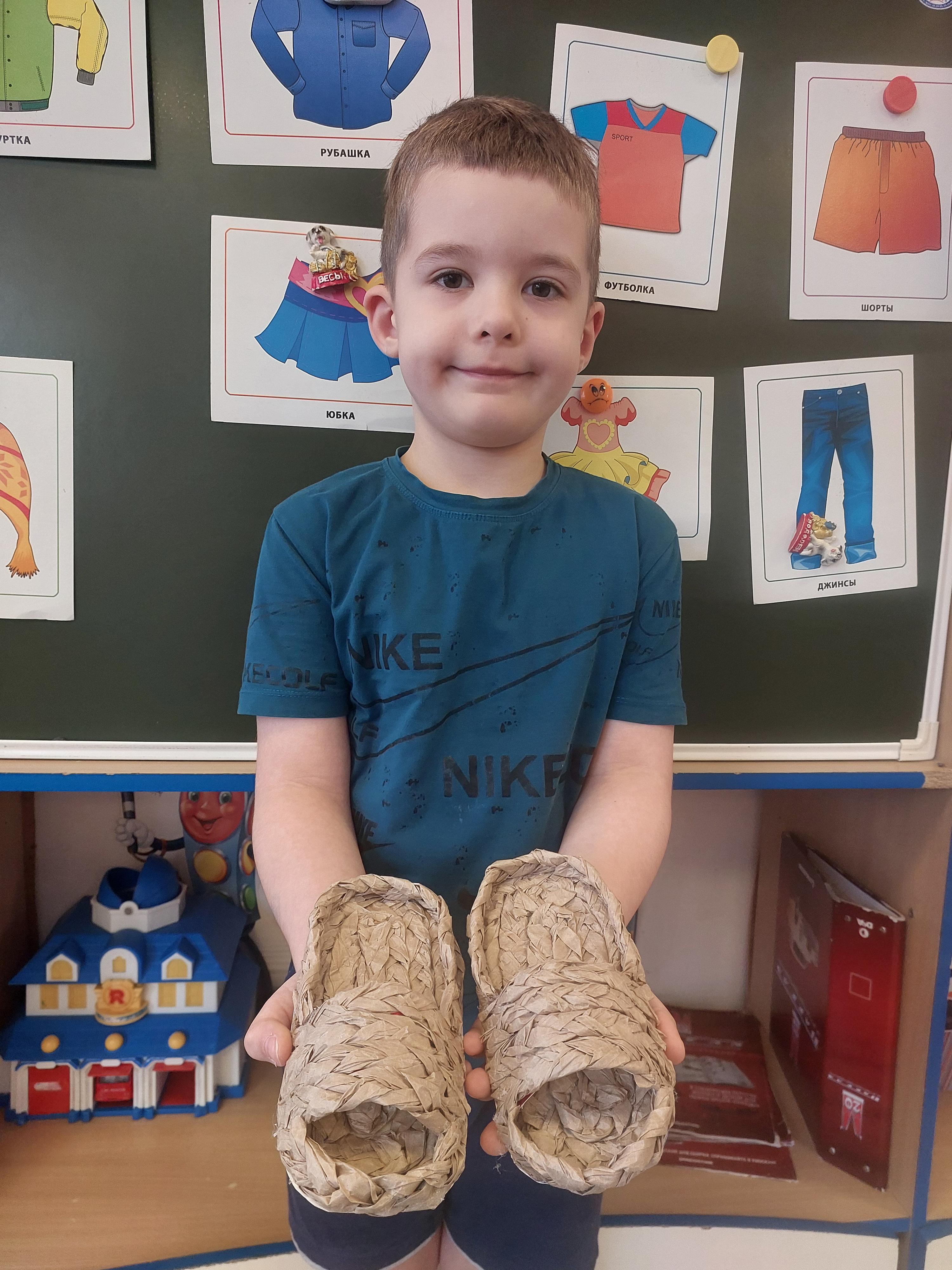 С 27 по 31 января в рамках тематической недели «Одежда. Обувь» в детском саду № 439, группе «Колосок», прошла выставка работ из бросового материала «Волшебные башмачки».