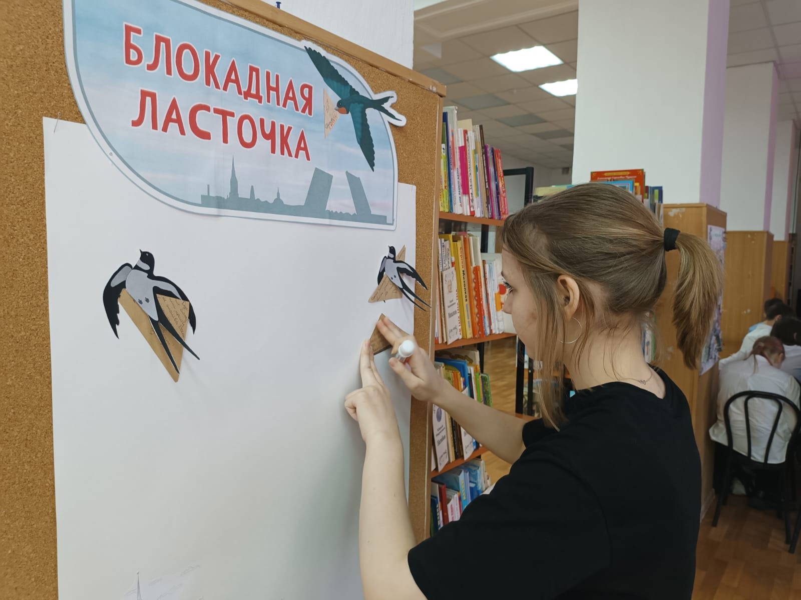 В рамках акции школьники написали письма жителям блокадного Ленинграда со словами уважения к их подвигу и оформили плакат, на который приклеили изображения ласточек с письмами, напоминающих о мужестве и стойкости людей, оказавшихся в окружении.