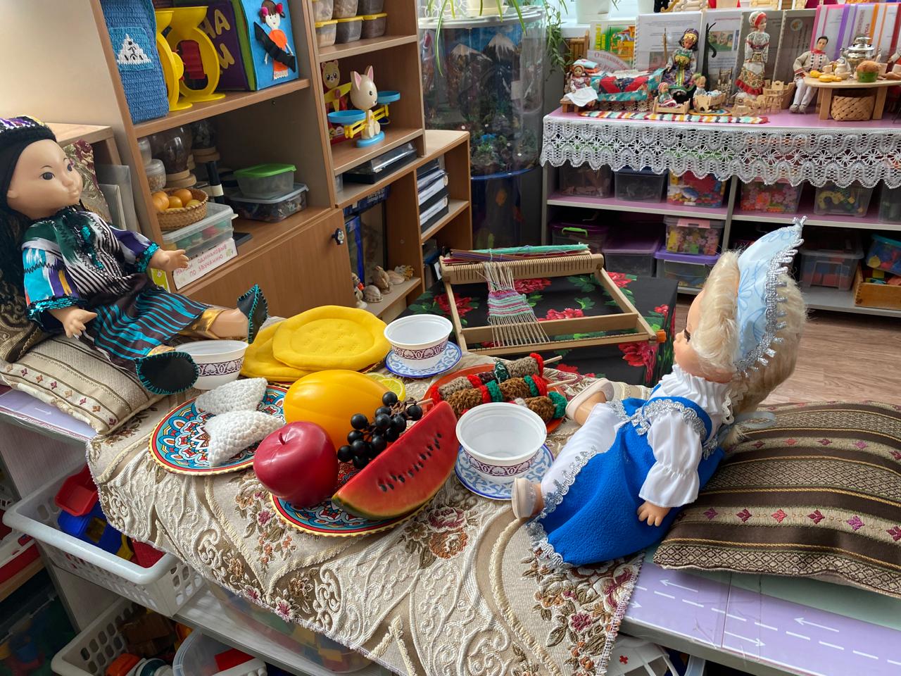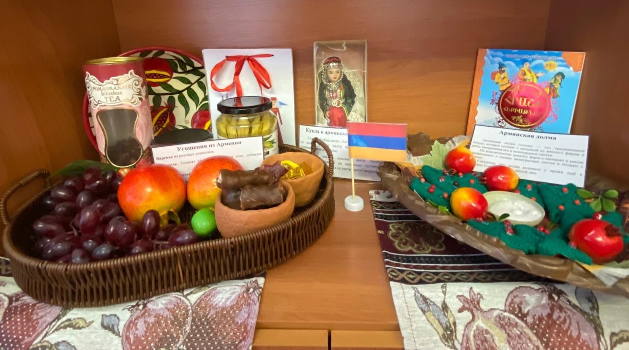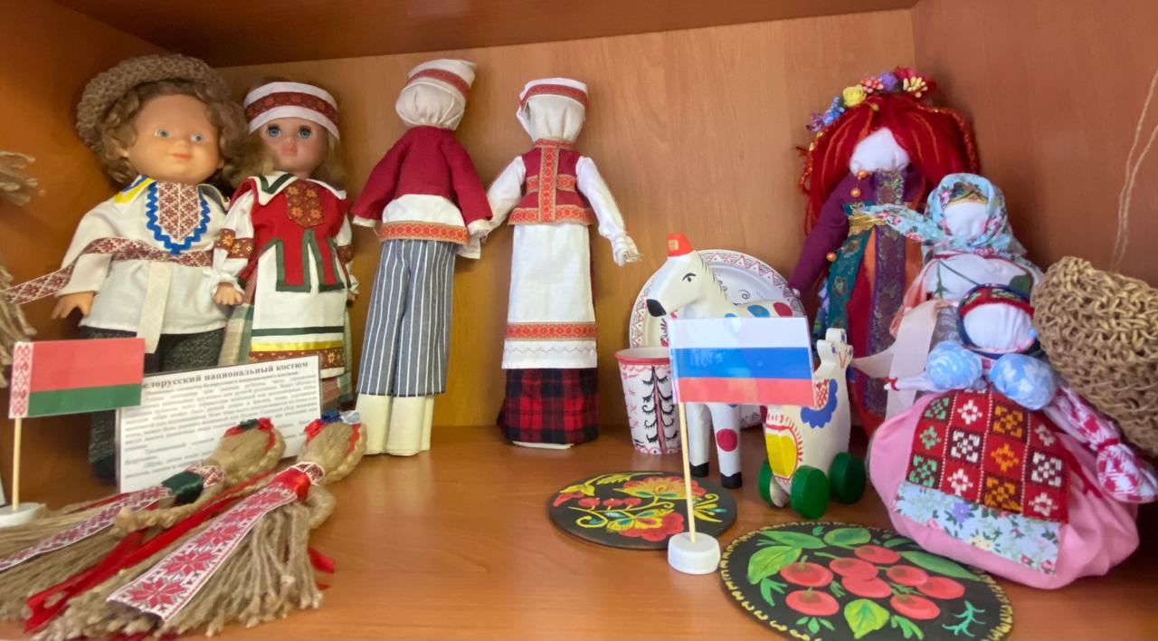 Участники мероприятия познакомились с экспонатами музея «Дружба народов», которые были предоставлены родителями воспитанников и сотрудниками детского сада.
