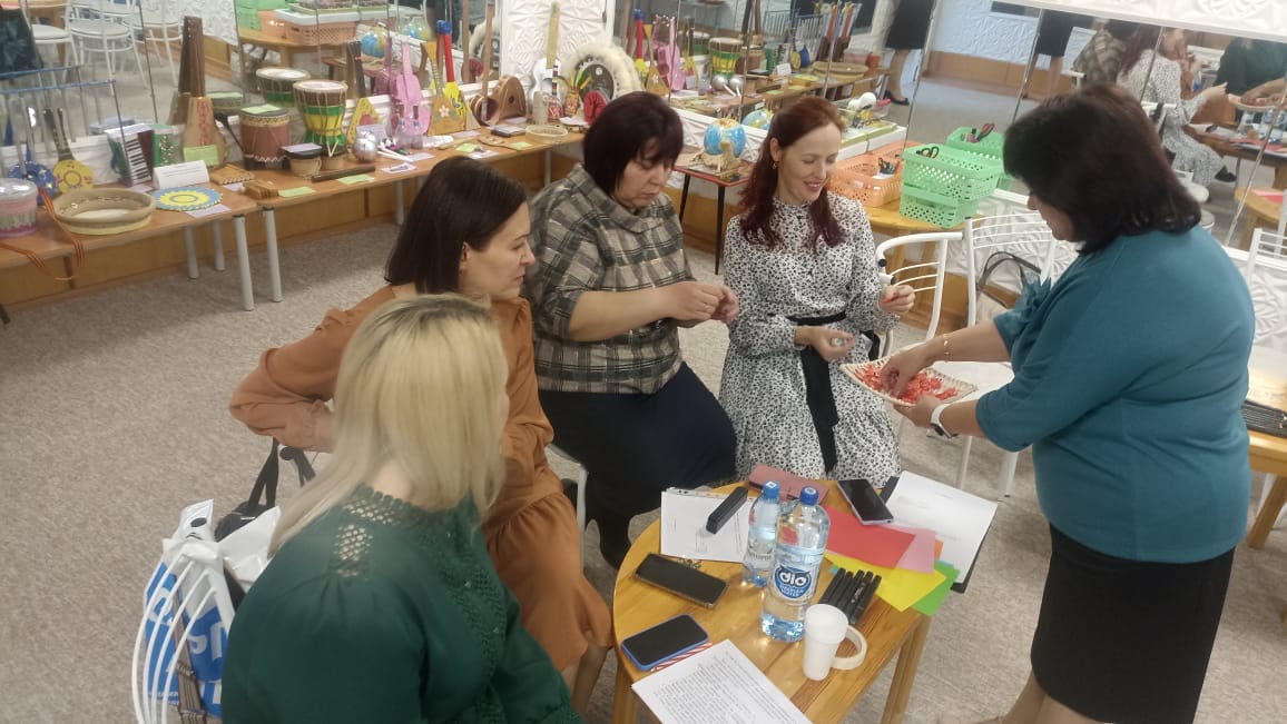Ольга Александровна Мищенко, музыкальный руководитель детского сада № 122, для формирования у педагогов профессиональной компетентности в поликультурном воспитании детей организовала музыкальную игру «Музыкальное домино “Национальный колорит”».