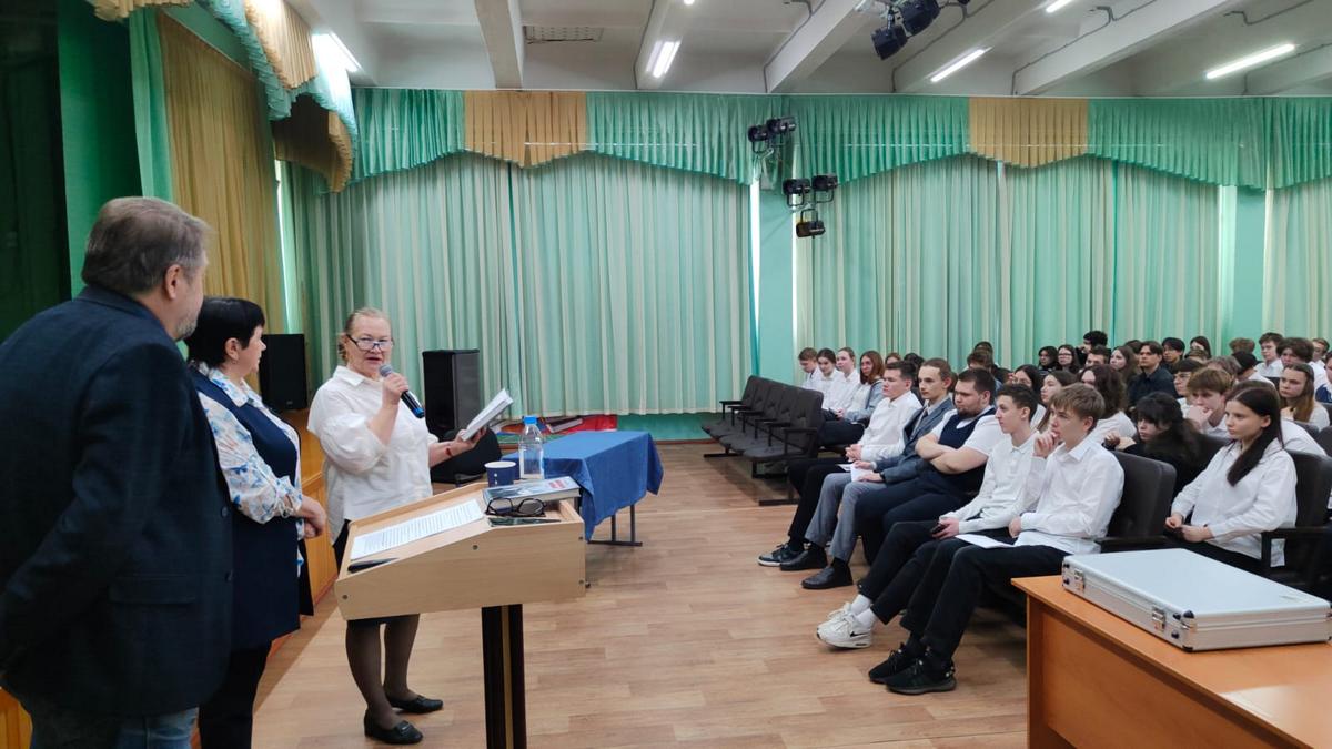 11 февраля в МБОУ СОШ № 56 в рамках недели гуманитарных дисциплин, посвященной 80-летию Победы в Великой Отечественной войне, прошла встреча с известным краеведом, автором книги «Новосибирск военный» Константином Артемовичем Голодяевым.