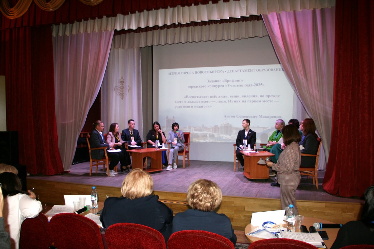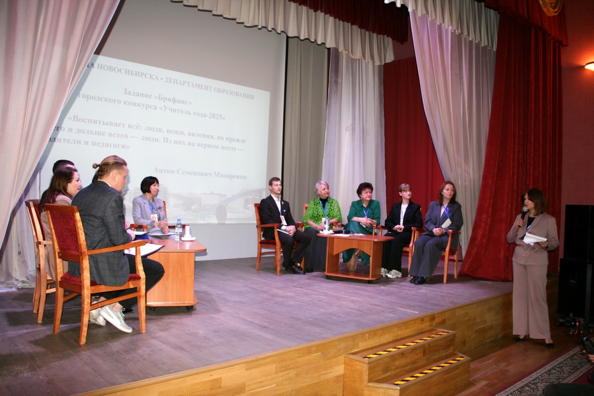 Участники брифинга отвечали на вопросы интервьюеров из числа ученической, родительской, профессиональной общественности в формате пресс-конференции. Вопросы участникам конкурса задавали ветераны педагогического труда, члены ассоциации молодых педагогов, учащиеся – победители конкурса «Ученик года».