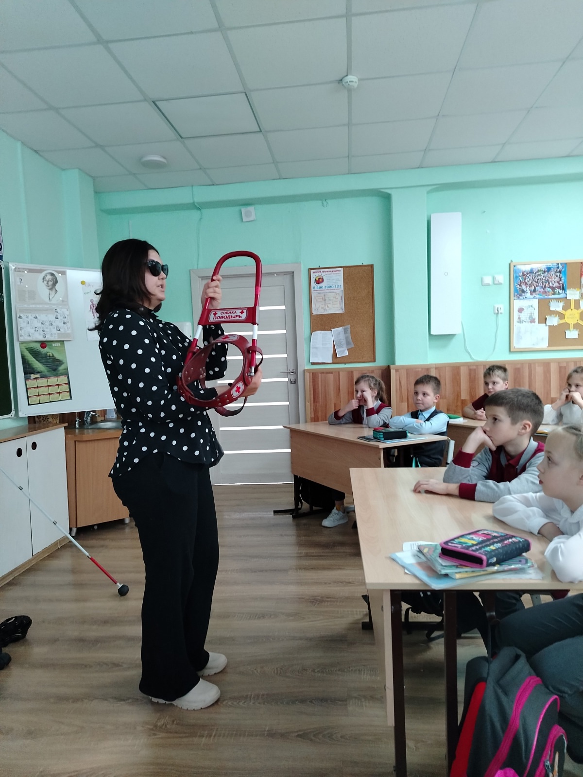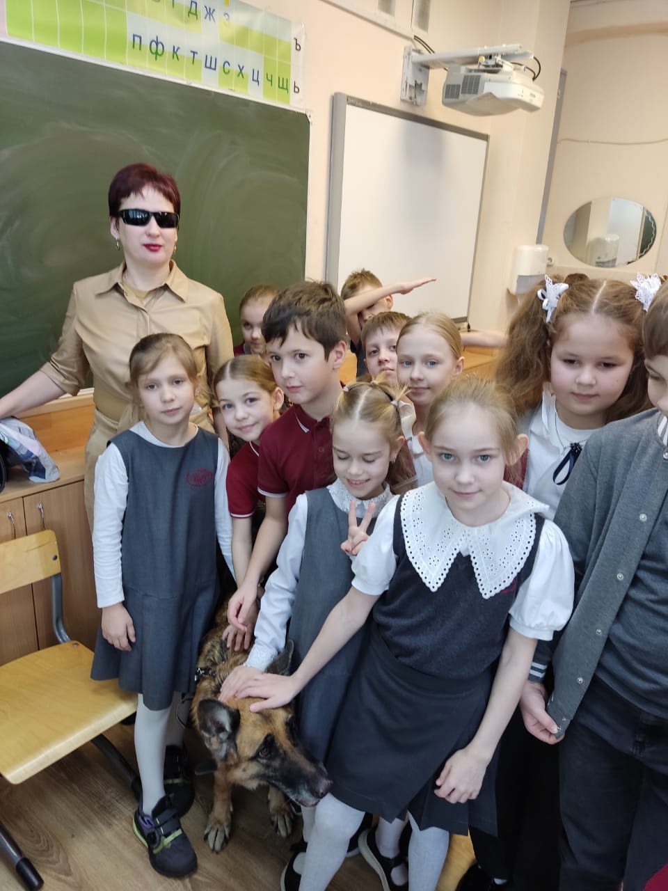 Преподаватели проводили занятия с собакой-проводником – главным помощником и другом таких людей. Ребятам показали книги, которые читают слабовидящие и незрячие, рассказали, как они пишут, как пользуются гаджетами.