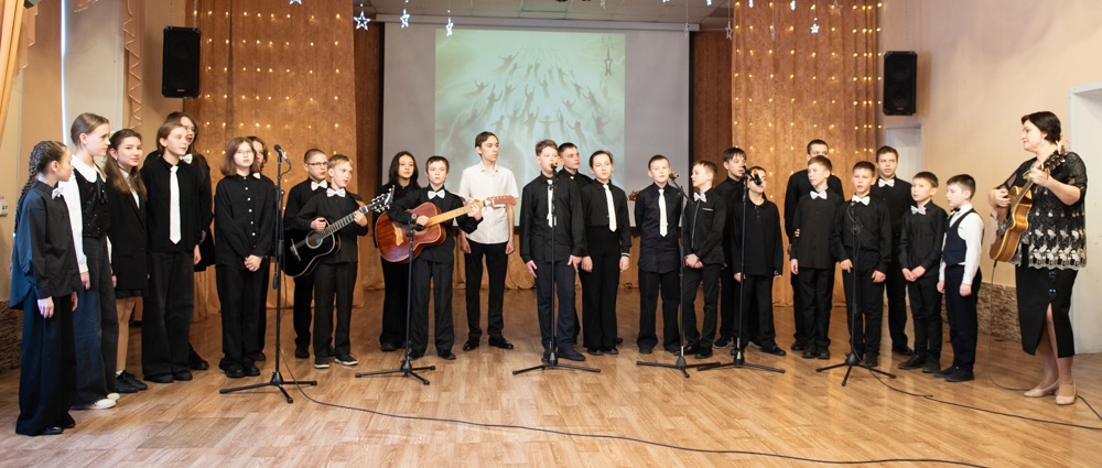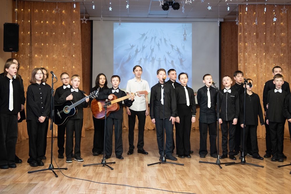 Концерт состоялся 19 февраля, в нем приняли участие все ребята объединения, став большим хоровом коллективом в составе 65 человек. Этот хор уникален тем, что может сам себе аккомпанировать на гитаре.