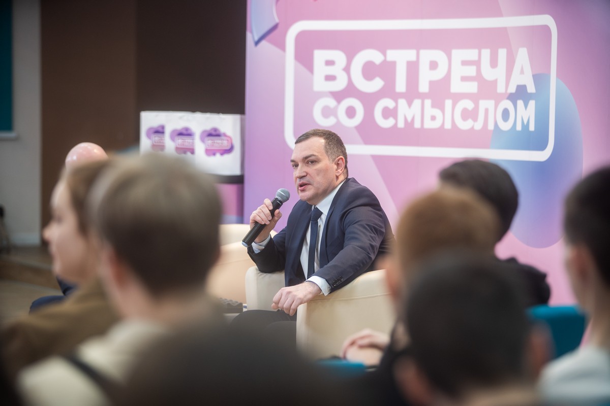 «Встреча со смыслом» – совместный проект департамента образования и Городского дворца детского творчества «Юниор». На протяжении пяти лет в ДТД УМ «Юниор» проходят встречи школьников с людьми, добившимися высоких результатов в своей профессиональной деятельности.